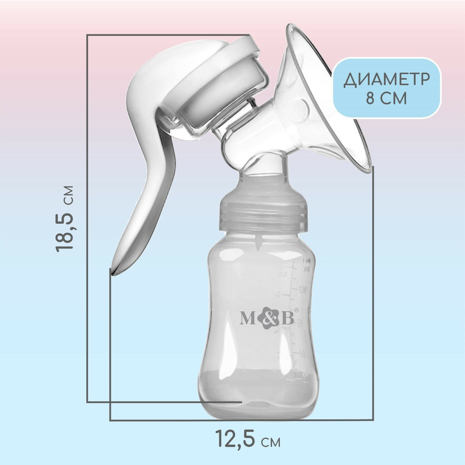 Молокоотсос ручной механический 2 в 1, с бутылочкой для кормления КЛ и соской, 150 мл, цвет белый, M&B