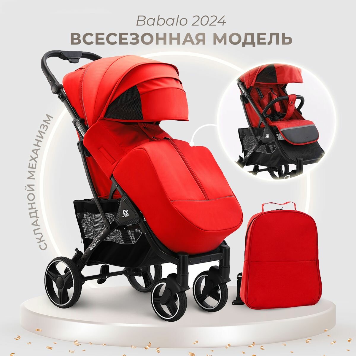 СохранитьДетская прогулочная коляска Babalo future 2024 NEW Красная, Рама черная, механическая спинка, сумка в комплекте интересное: