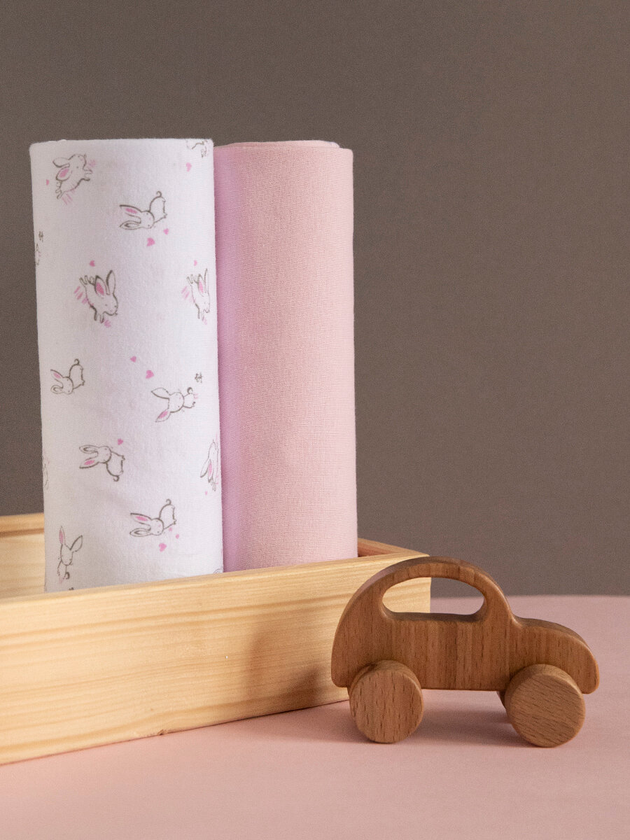 Пеленки для новорожденных хлопок трикотажные Tessolo Home, 90х120, 2 шт, зайчики