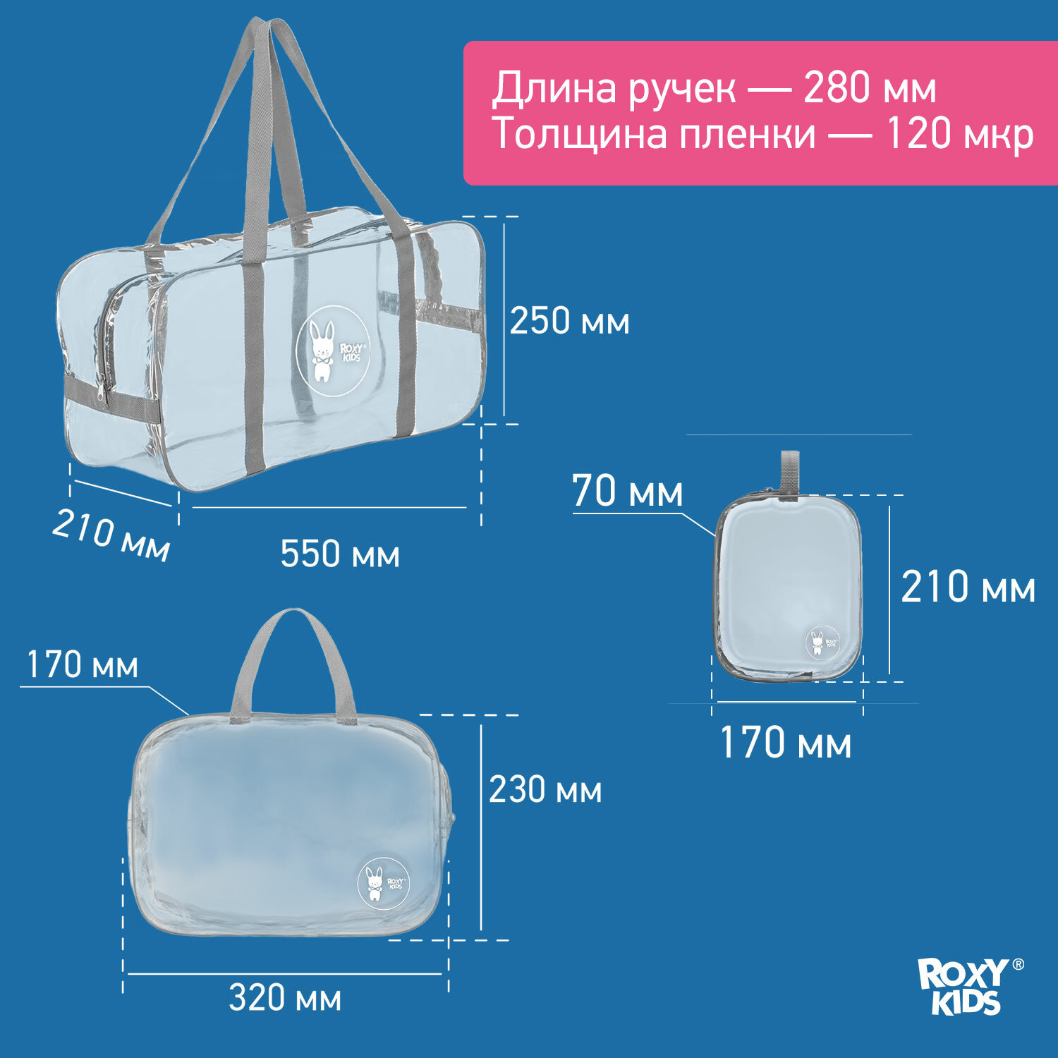 Купить Сумка в роддом прозрачная для беременной, 3 шт в комплекте, цвет серый