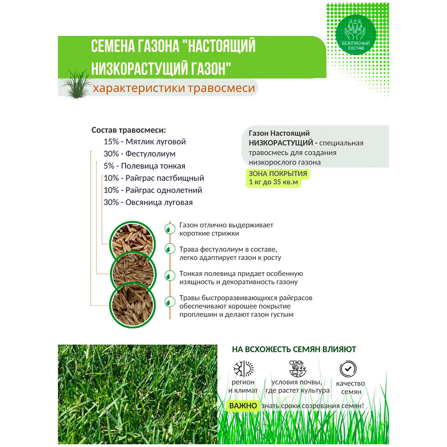 | Трава | мятлик / овсяница / полевица / райграс / фестулолиум |