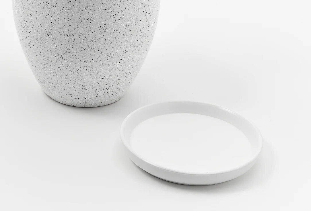 Горшок керамический Вещицы Терраццо с подставкой, 0.5 л, белый