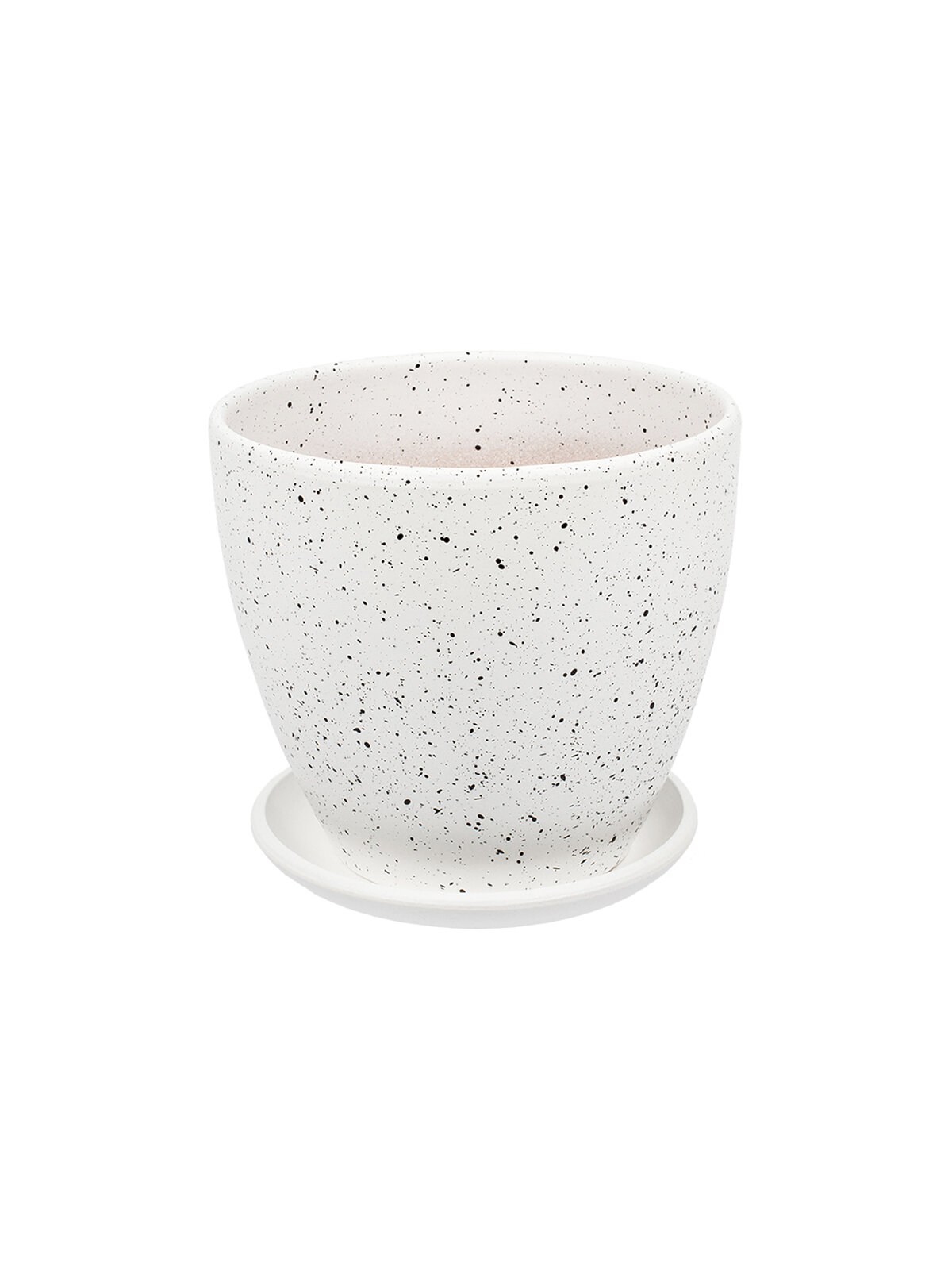 Горшок керамический Вещицы Терраццо с подставкой, 2,4 л, белый