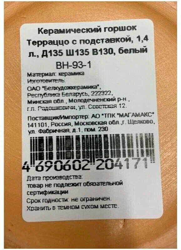 | Дополнительная информация | Керамический горшок - 1 шт., подставка - 1 шт. |