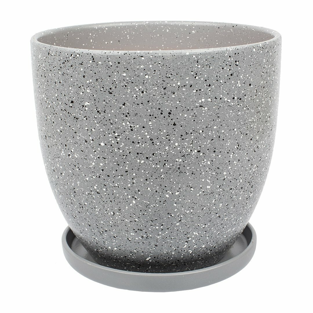 Керамический горшок цветочный ВеЩицы "Терраццо"с подставкой блюдцем / Горшок для цветов с поддоном / Горшок для растений / объем 1,4 л, цвет серый