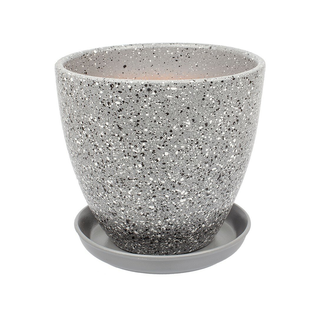 Керамический горшок цветочный ВеЩицы "Терраццо"с подставкой блюдцем / Горшок для цветов с поддоном / Горшок для растений / объем 1,4 л, цвет серый