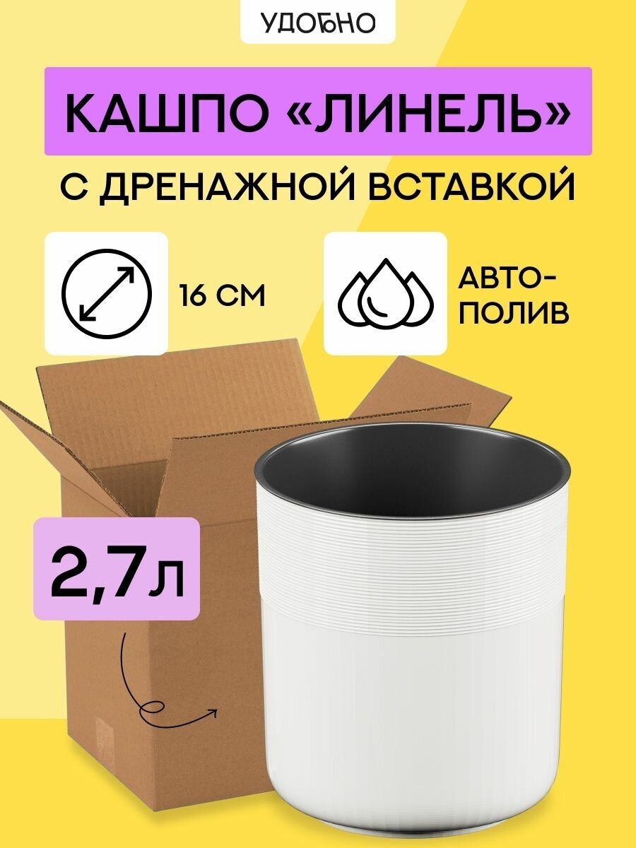 Кашпо для цветов со вставкой "Линель", 2,7 л, d 16 см, h 16 см, цвет белый