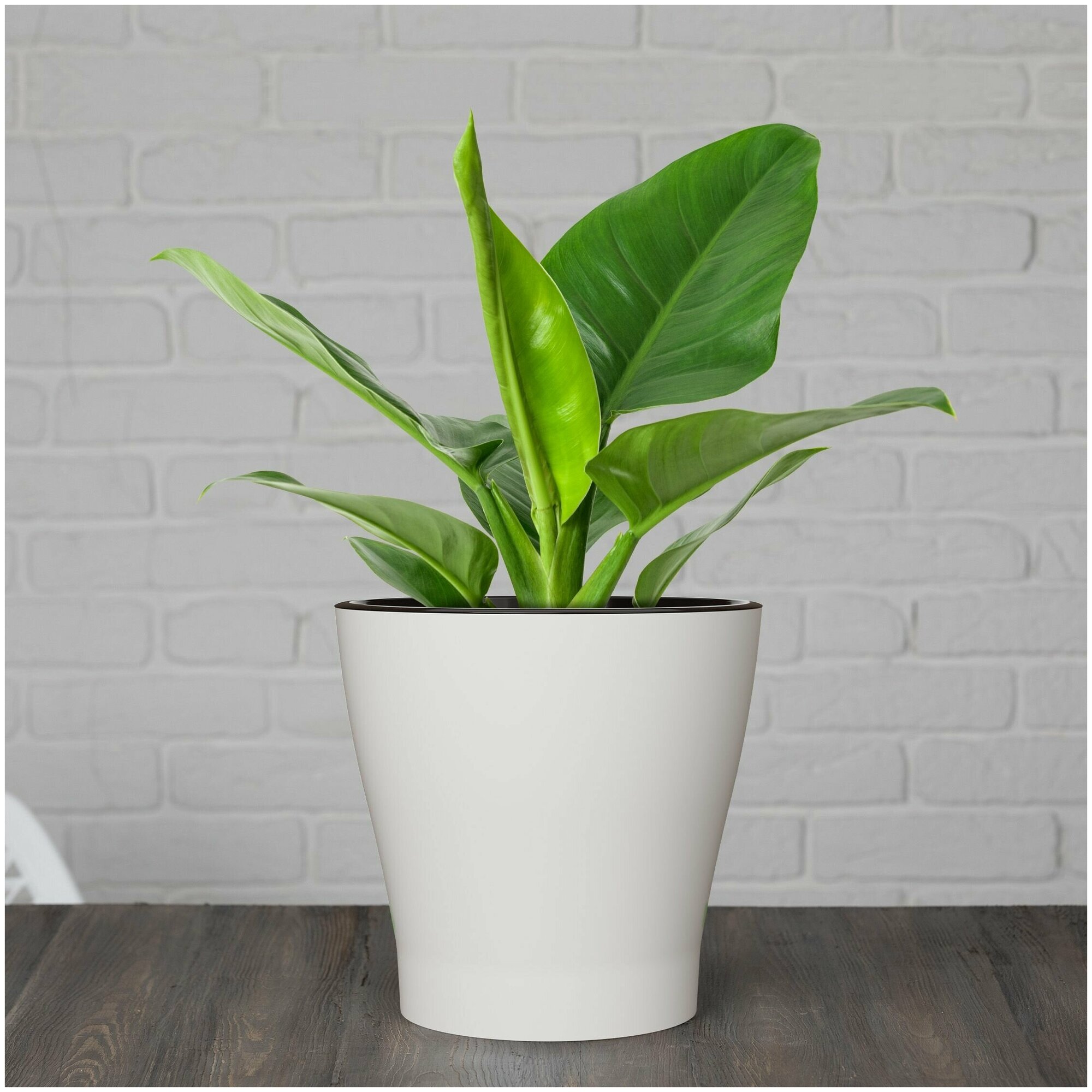 Кашпо 17 литров белое Лея со вставкой