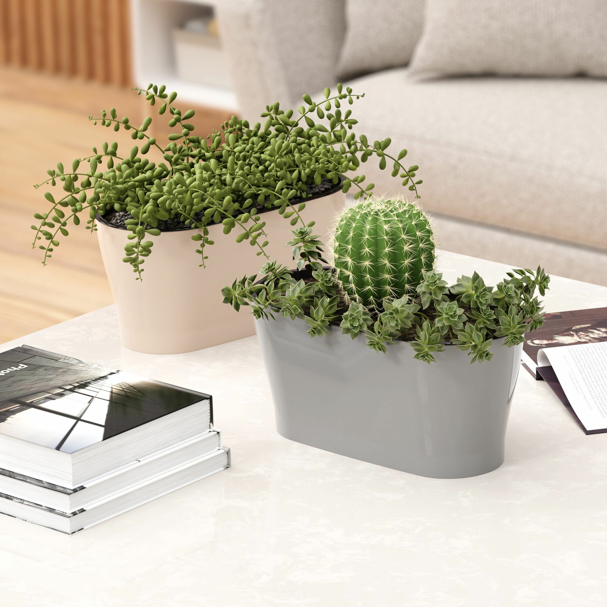 ЗПИ «Альтернатива» Горшок цветочный "Лея" 4л овальный двойной с автополивом бежевый М8590