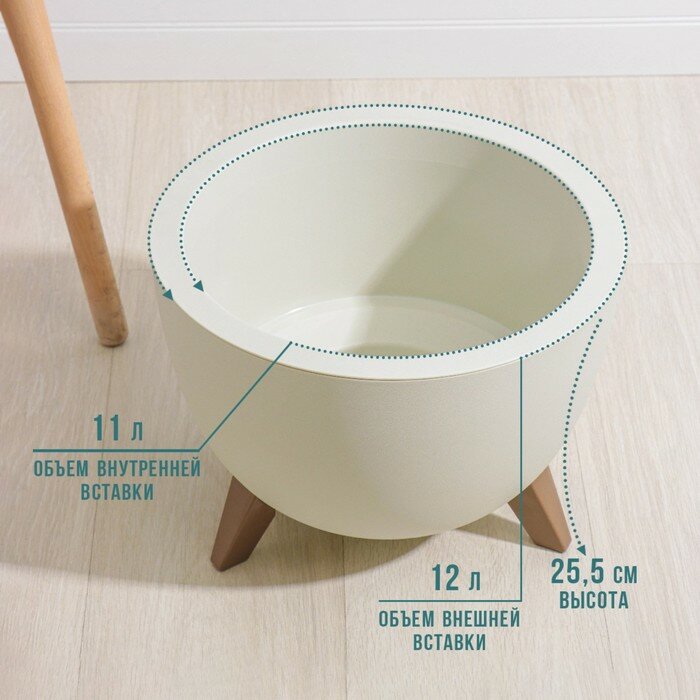 Кашпо на ножках «Флориан», 5,5 л (объём внутренней вставки 4,2 л), d=25 см, h=18,5 см, цвет белый ротанг