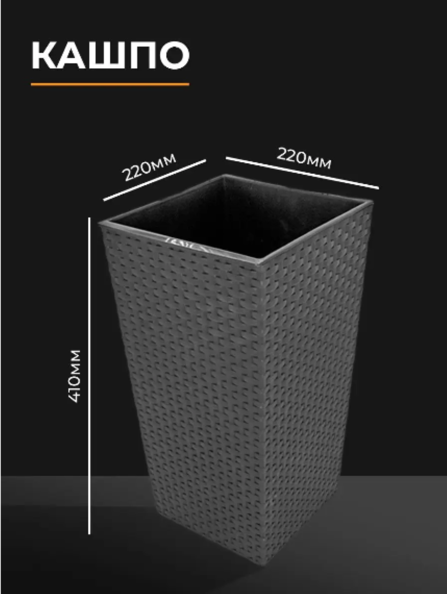 Кашпо напольное "Ротанг" (220х220х410мм) без вставки мокко 15л (М8851)