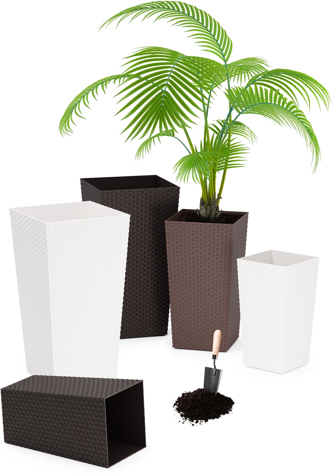 Комплект из 3 штук кашпо напольное без вставки 28л ротанг мокко