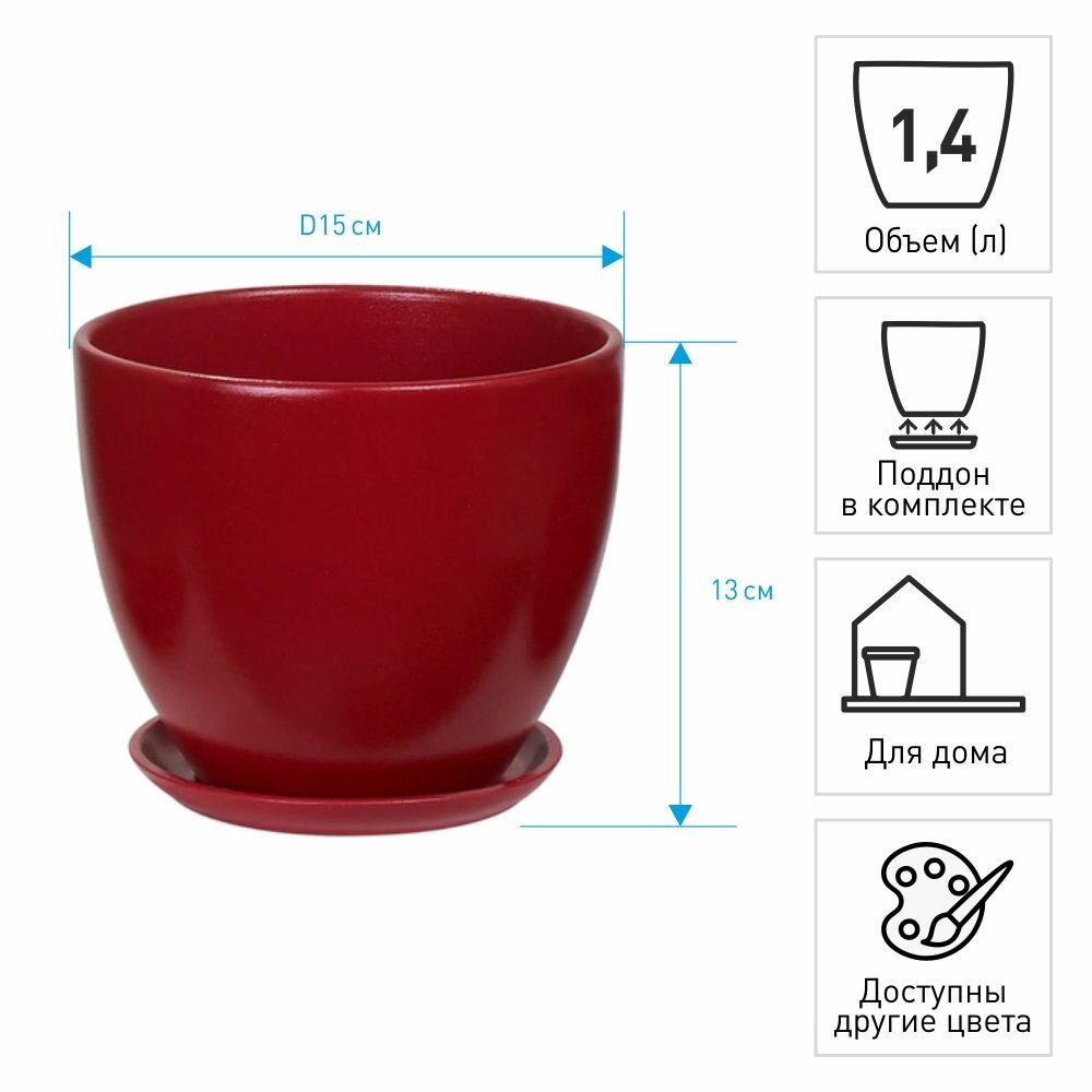 Купить Горшок цветочный "Колор Гейм" красный, 1,4 л 9355483 .