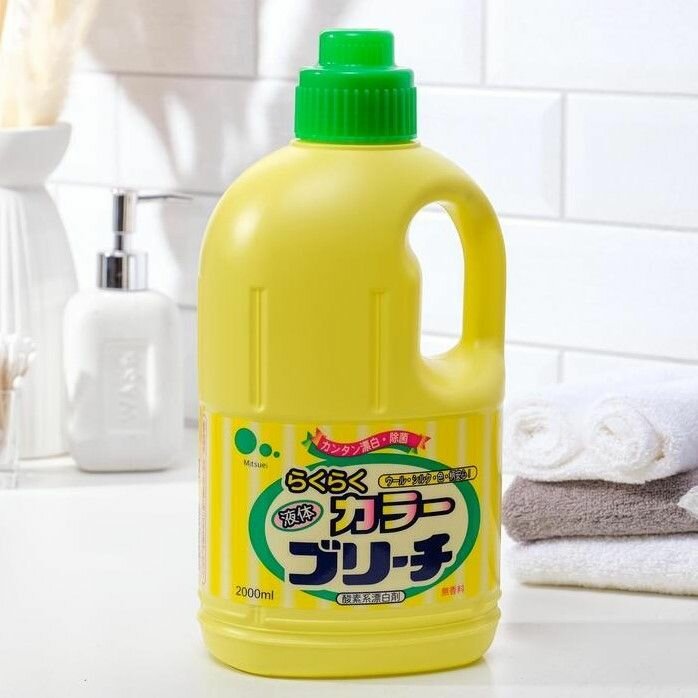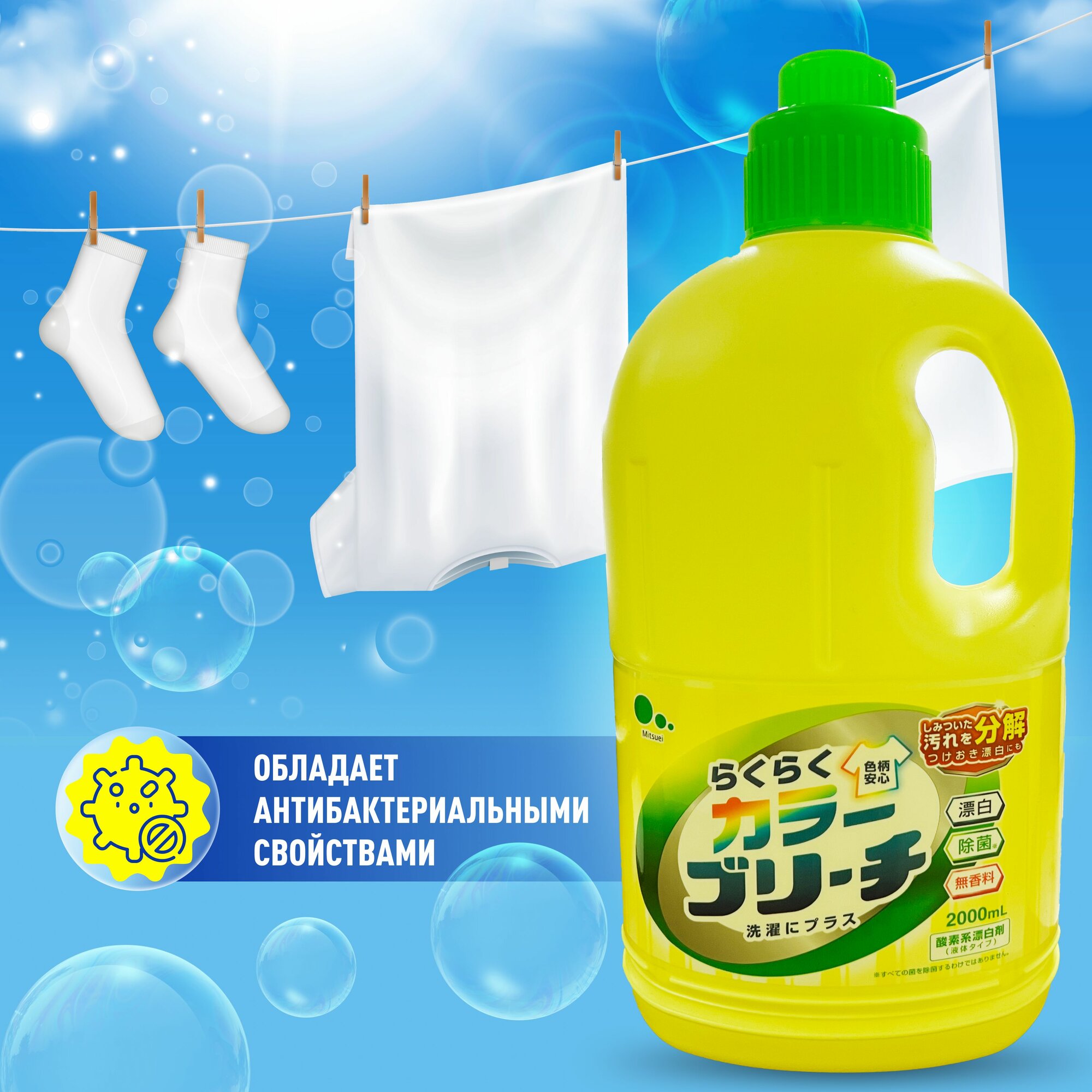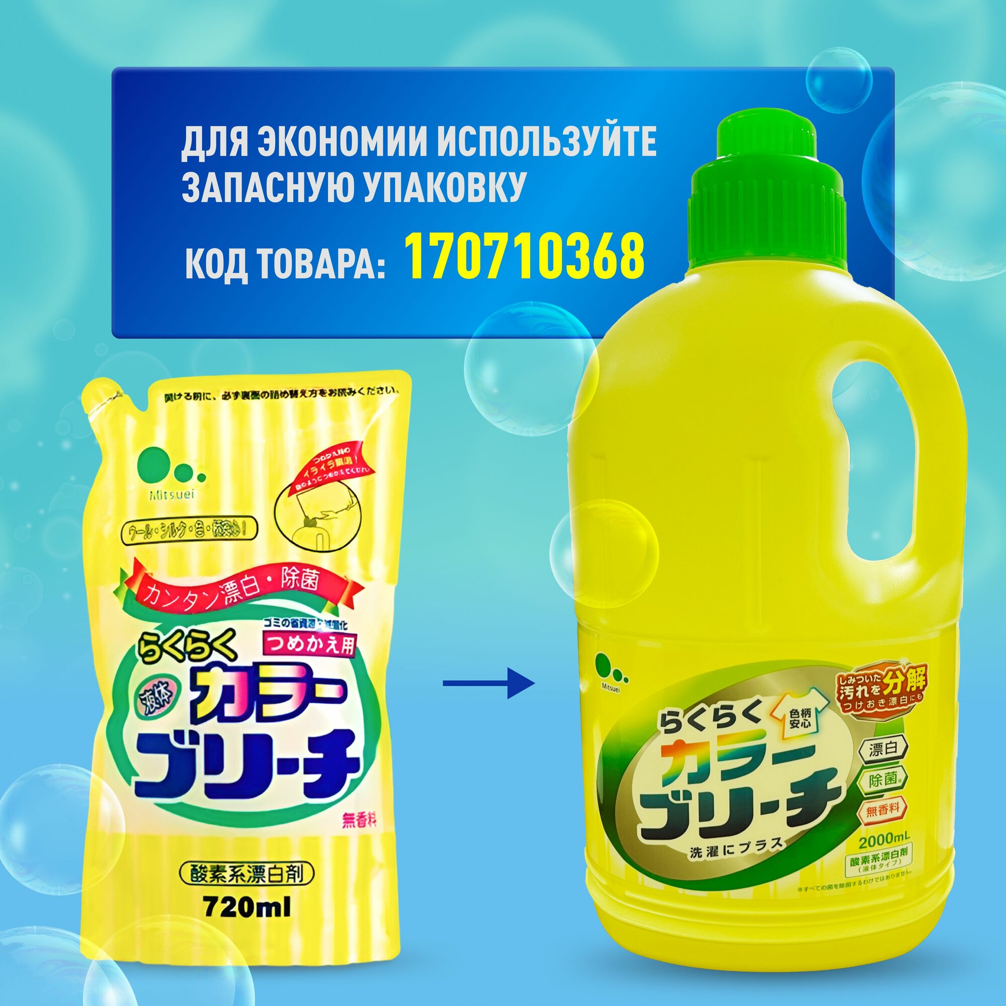 Mitsuei Кислородный отбеливатель для цветных и деликатных вещей, 2000 мл / Жидкий пятновыводитель для стирки белья, без хлора, 2 литра / Японская бытовая химия для дома