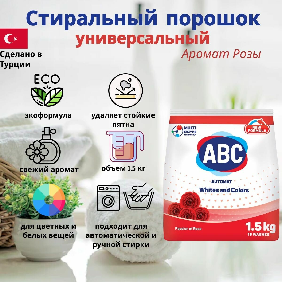 Стиральный порошок ABC Роза для цветного белья 1.5 кг / Турция интересное: