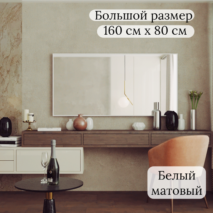 Зеркало настенное в раме 160х80 см, серия Merida, цвет белый матовый