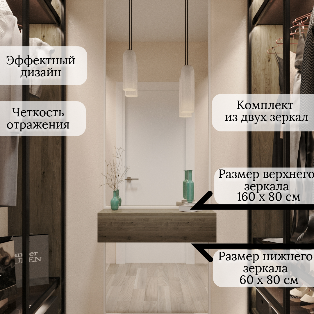 Зеркало настенное 220 х 80 см (комплект из 2х зеркал) Merida в прихожую на стену в прихожую, гостинную, спальню