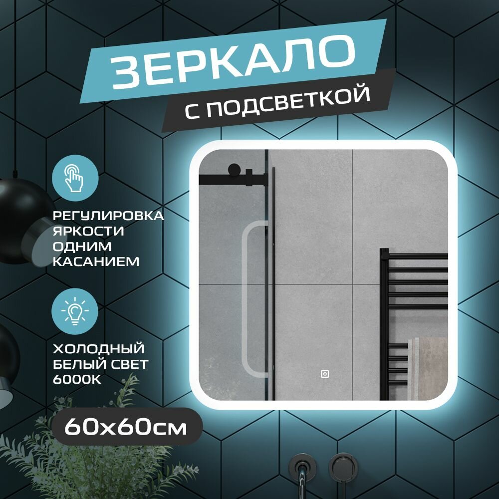 Зеркало с подсветкой в ванную комнату настенное сенсорное 60*60 см