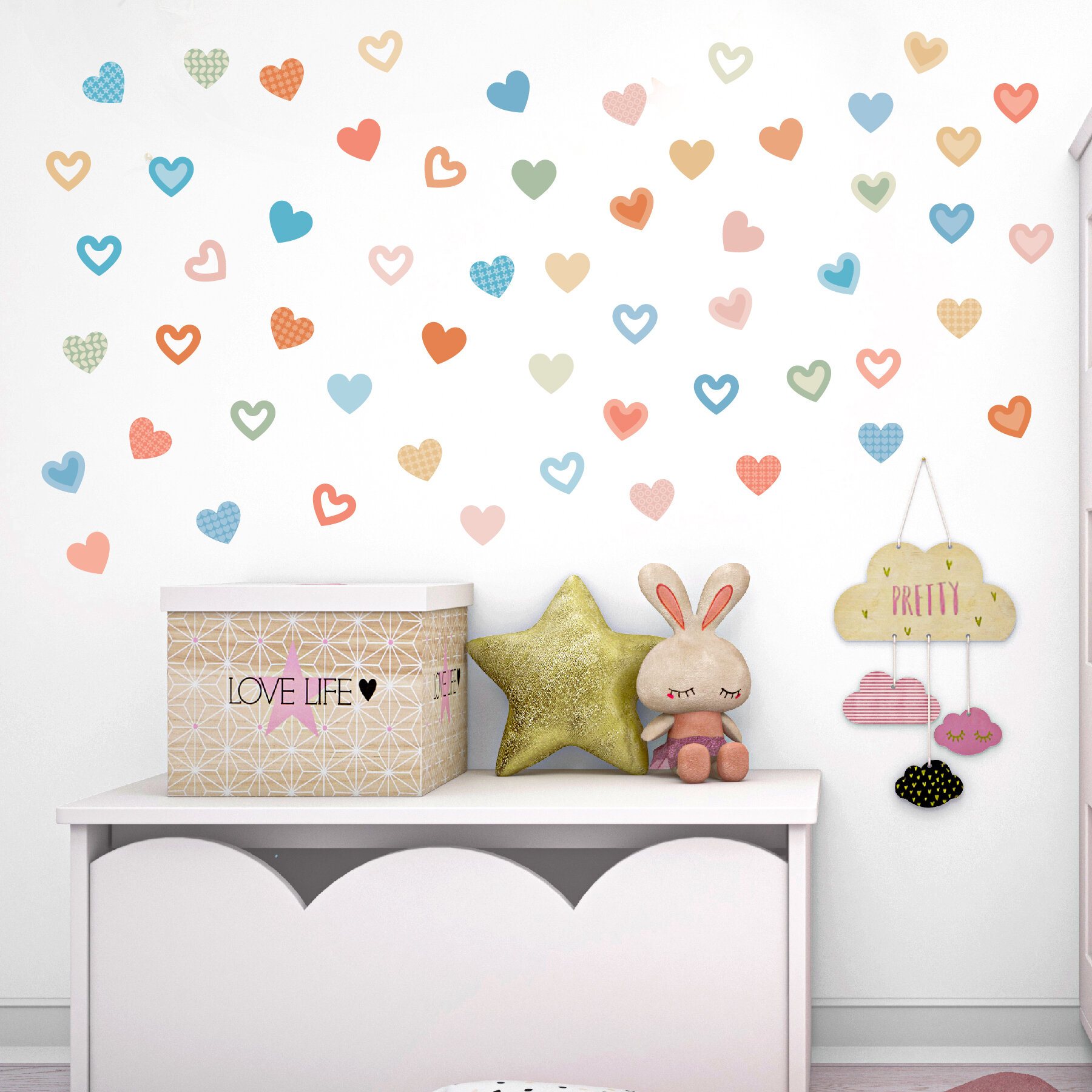 Наклейки на стену разноцветные сердца
