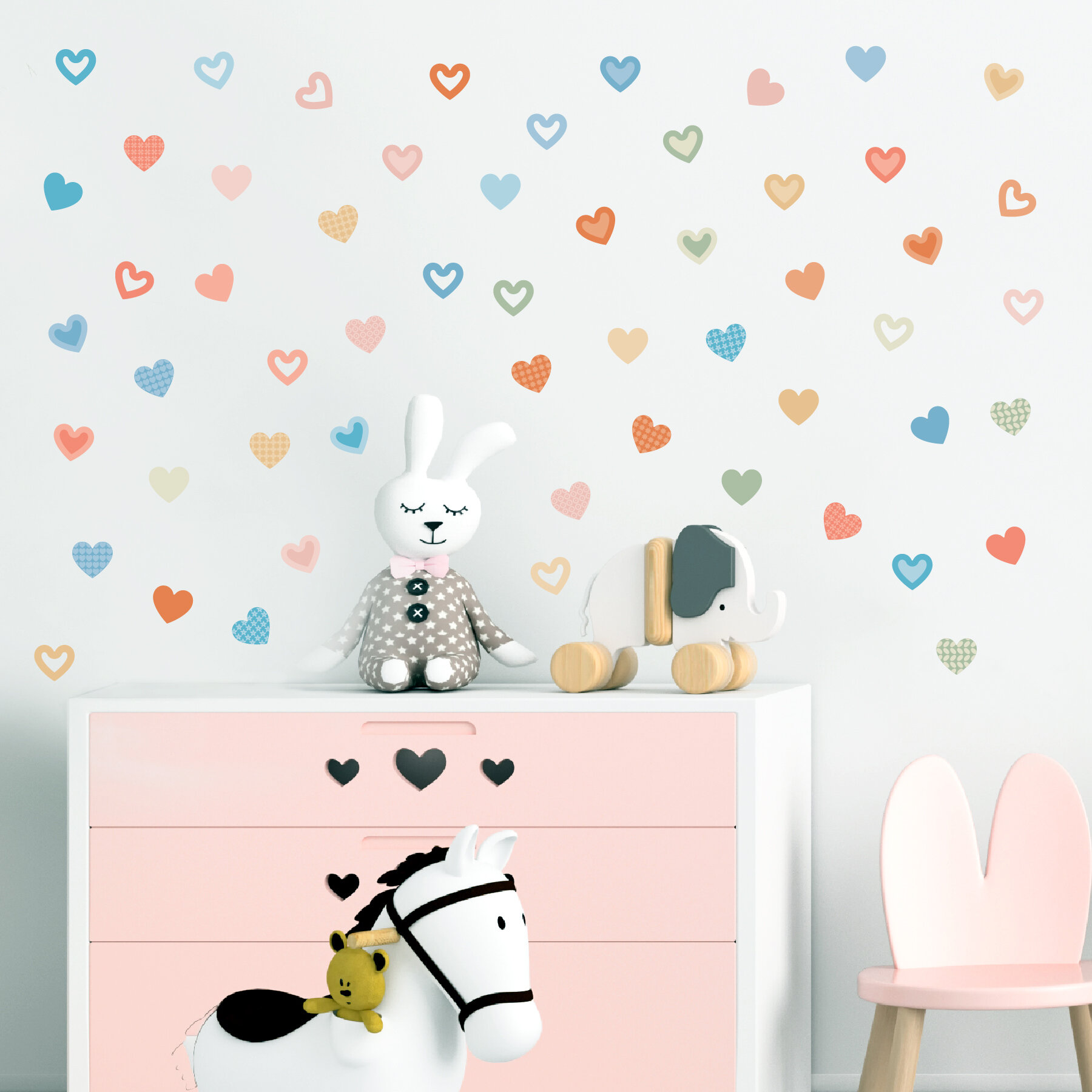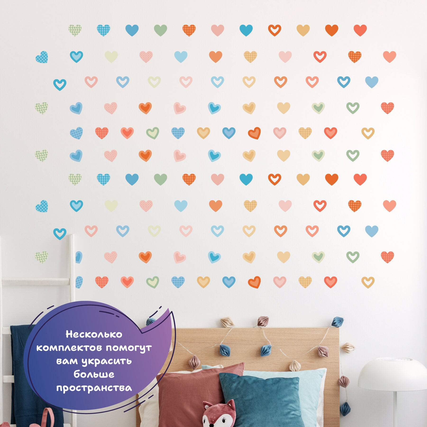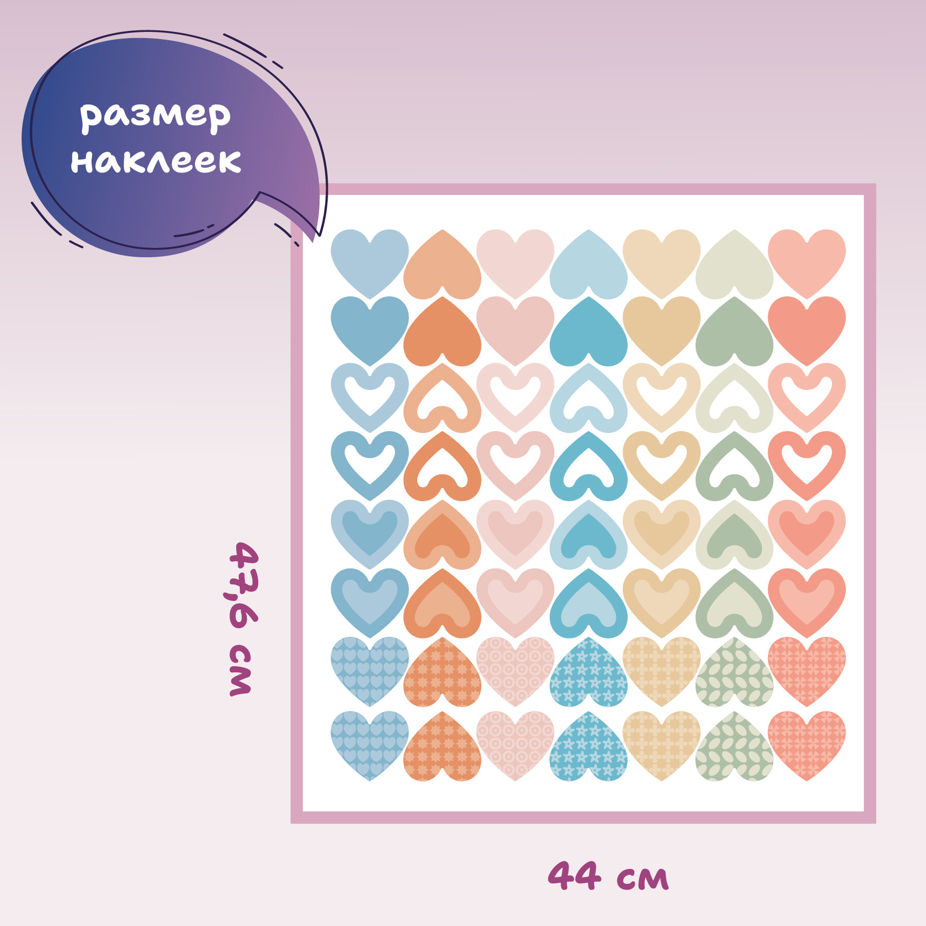 наклейки интерьерные сердца на стену, на дверь, на шкаф, на комод, на тумбочку, на холодильник, на фасад, в детскую, в гостинную, на кухню