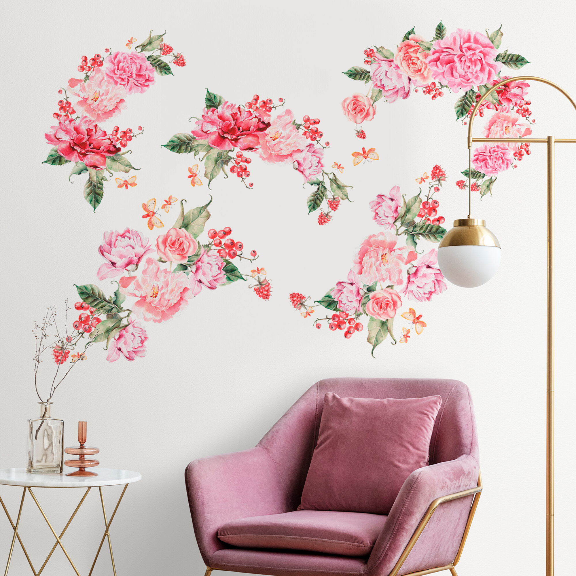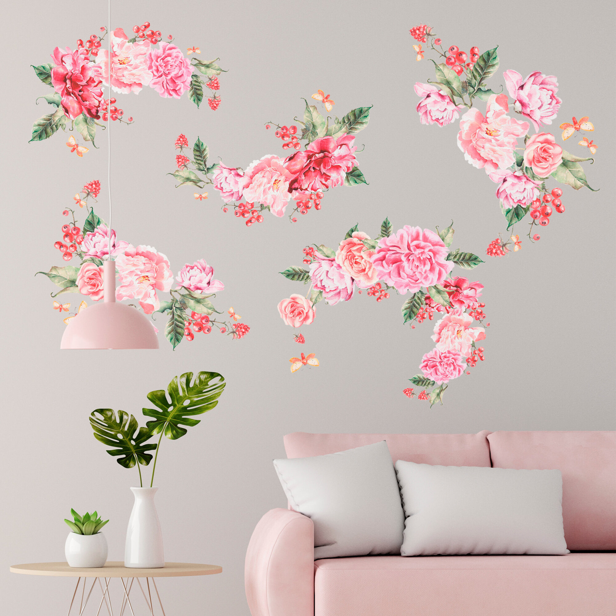 наклейки интерьерные шикарные розовые цветы
