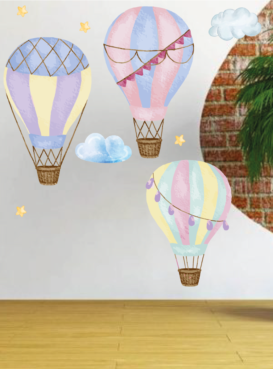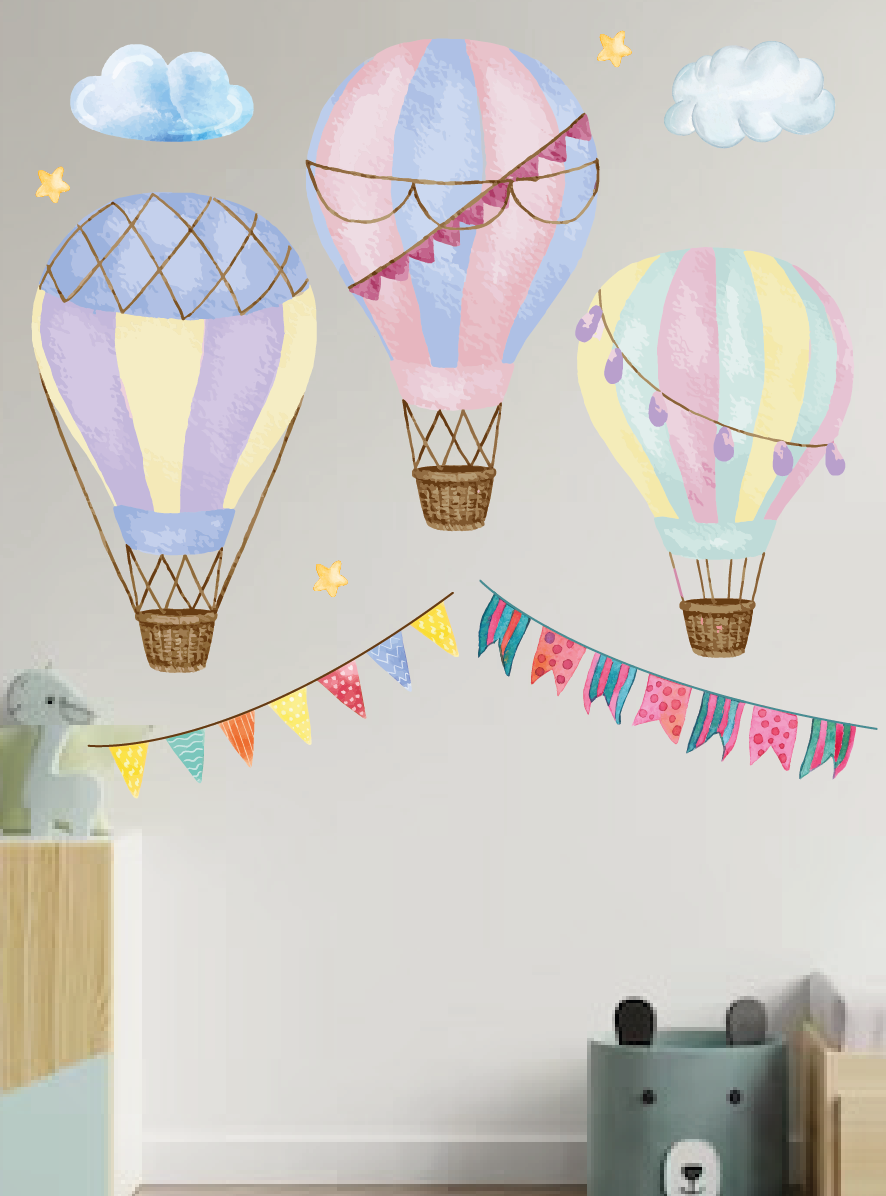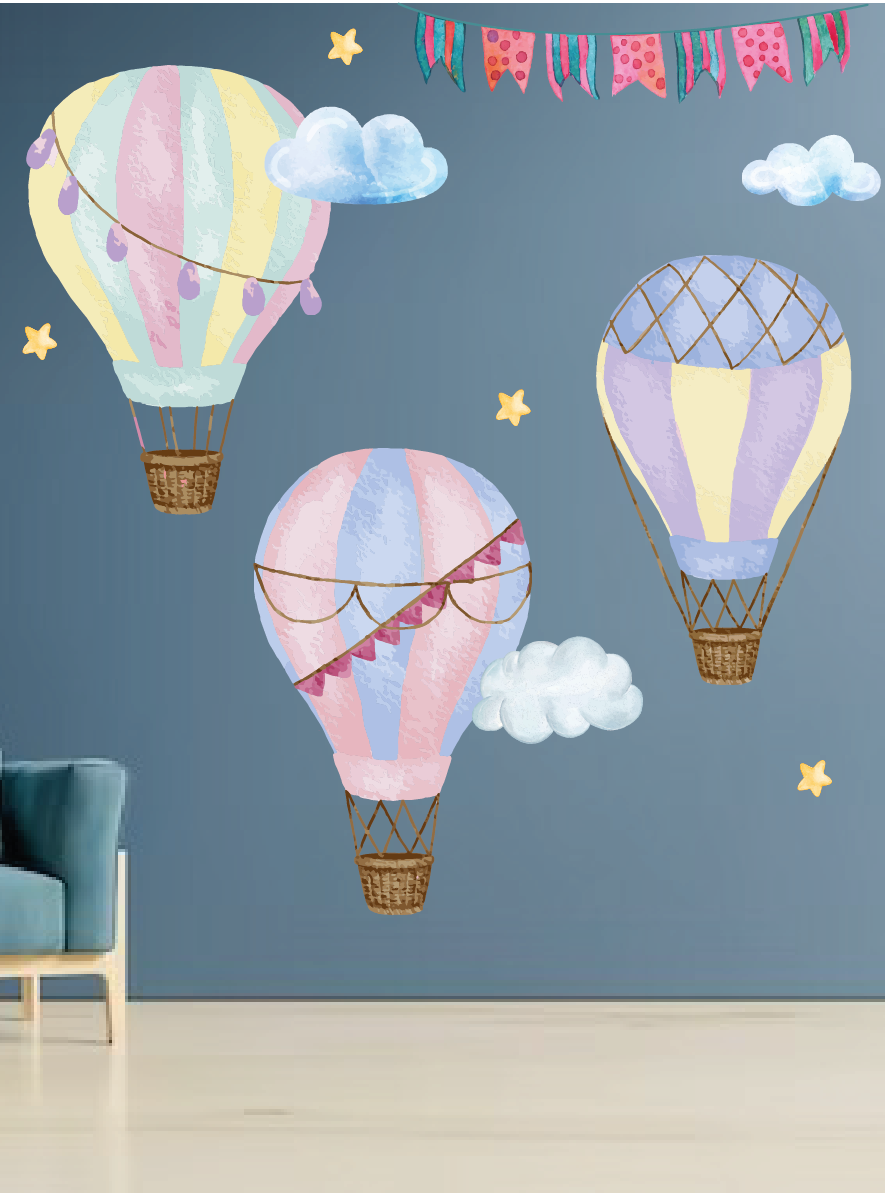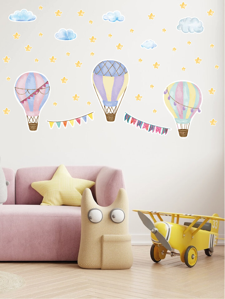 Купить Большие интерьерные наклейки для декора детской на стену Полет на воздушном шаре