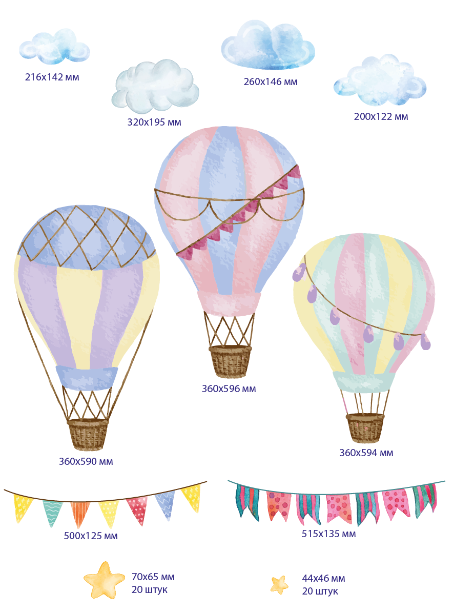 СохранитьБольшие интерьерные наклейки для декора детской на стену Полет на воздушном шаре интересное: