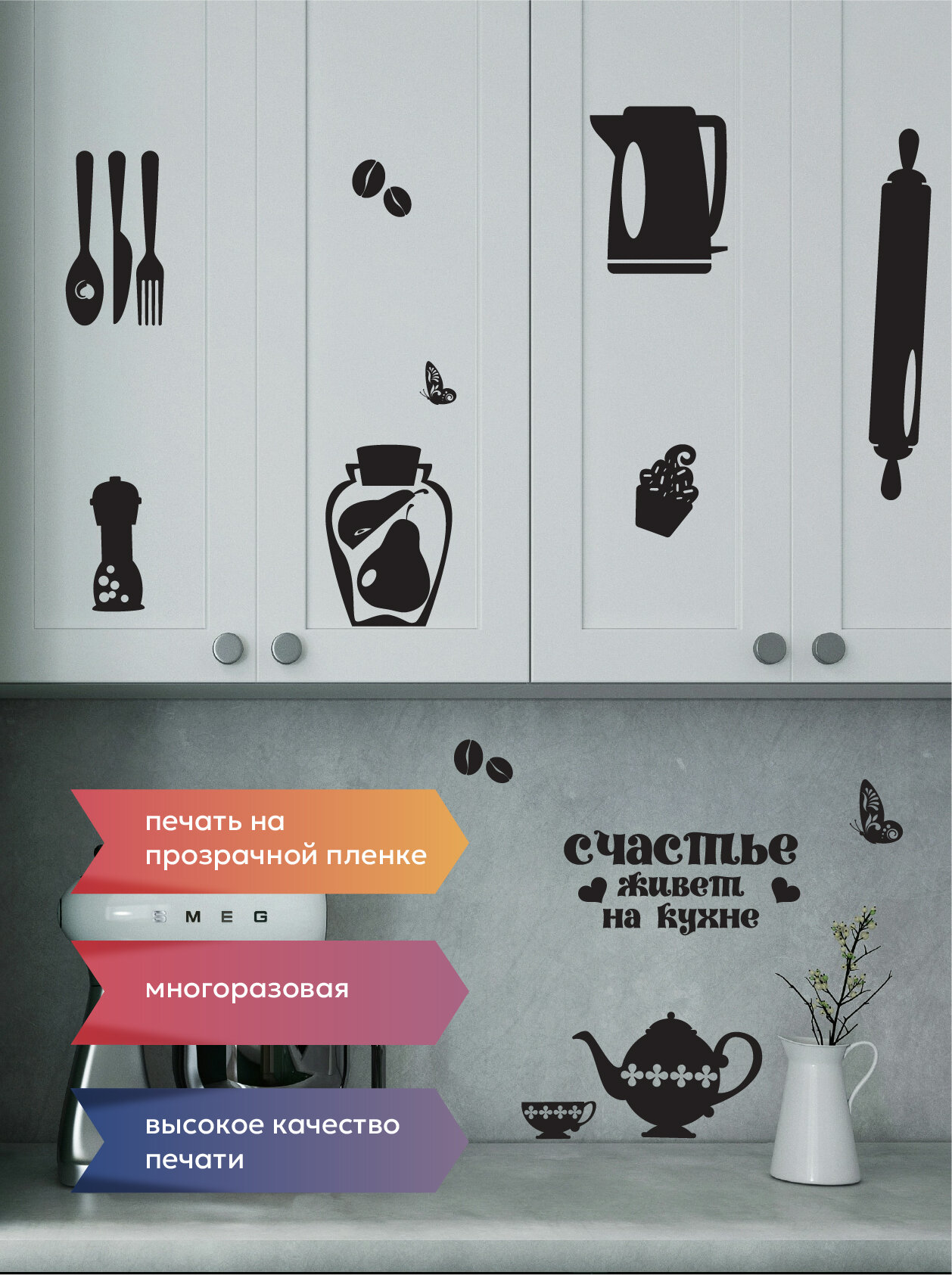 Набор наклеек декоративных для кухни на холодильник, на стену