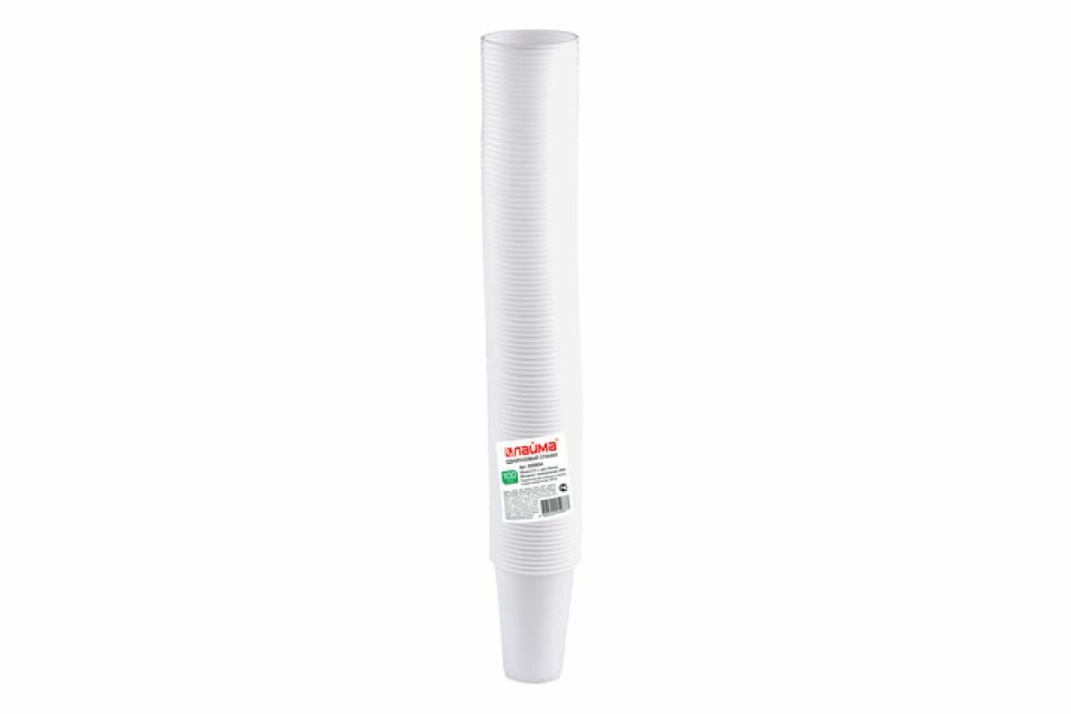 Одноразовые стаканы 200мл, комплект 100шт., пластиковые, бюджет, белые, ПП, хол/гор, LAIMA, 600934
