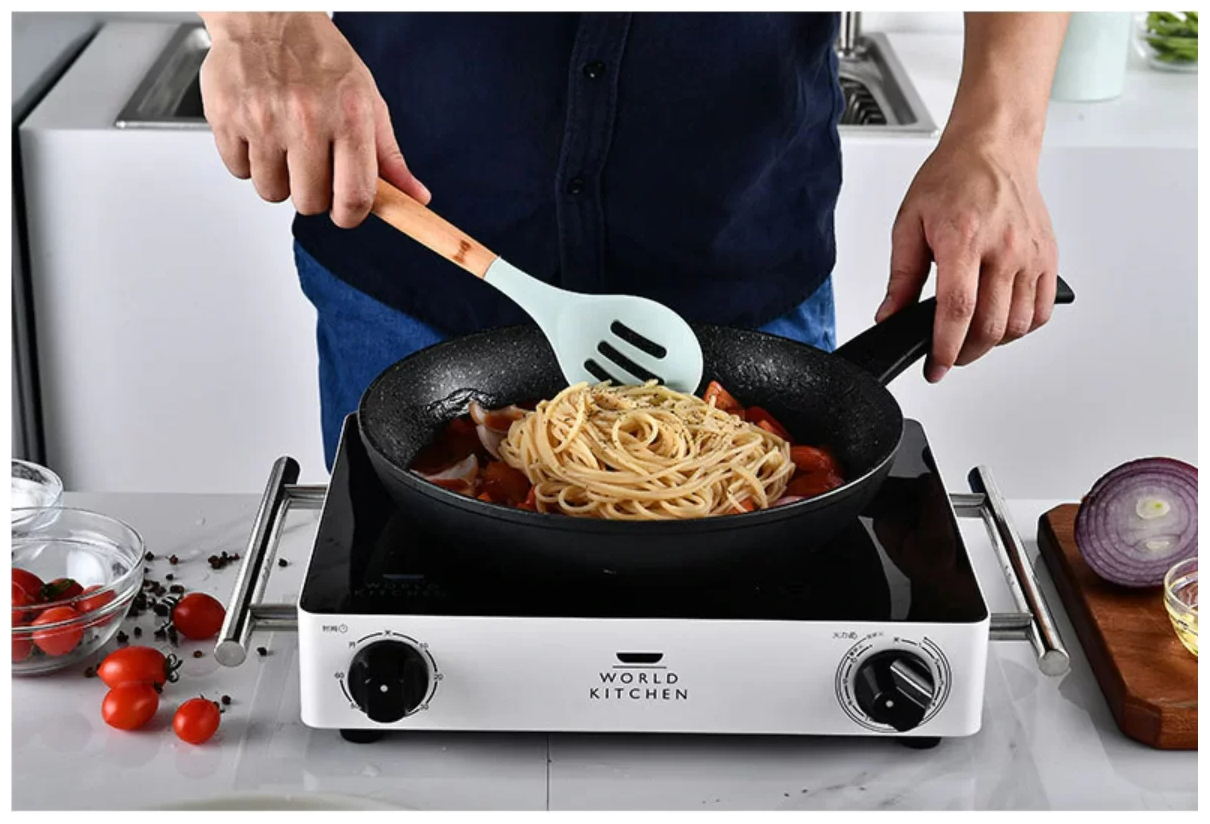 | Особенности | антибактериальное покрытие / антиналипающее покрытие / использование в СВЧ / использование в духовке / мытье в посудомоечной машине / на подставке / нескользящая ручка / нескользящее основание / подходит для антипригарных покрытий / противоскользящая основа / с овощечисткой / с петлей для подвешивания / силиконовое покрытие |