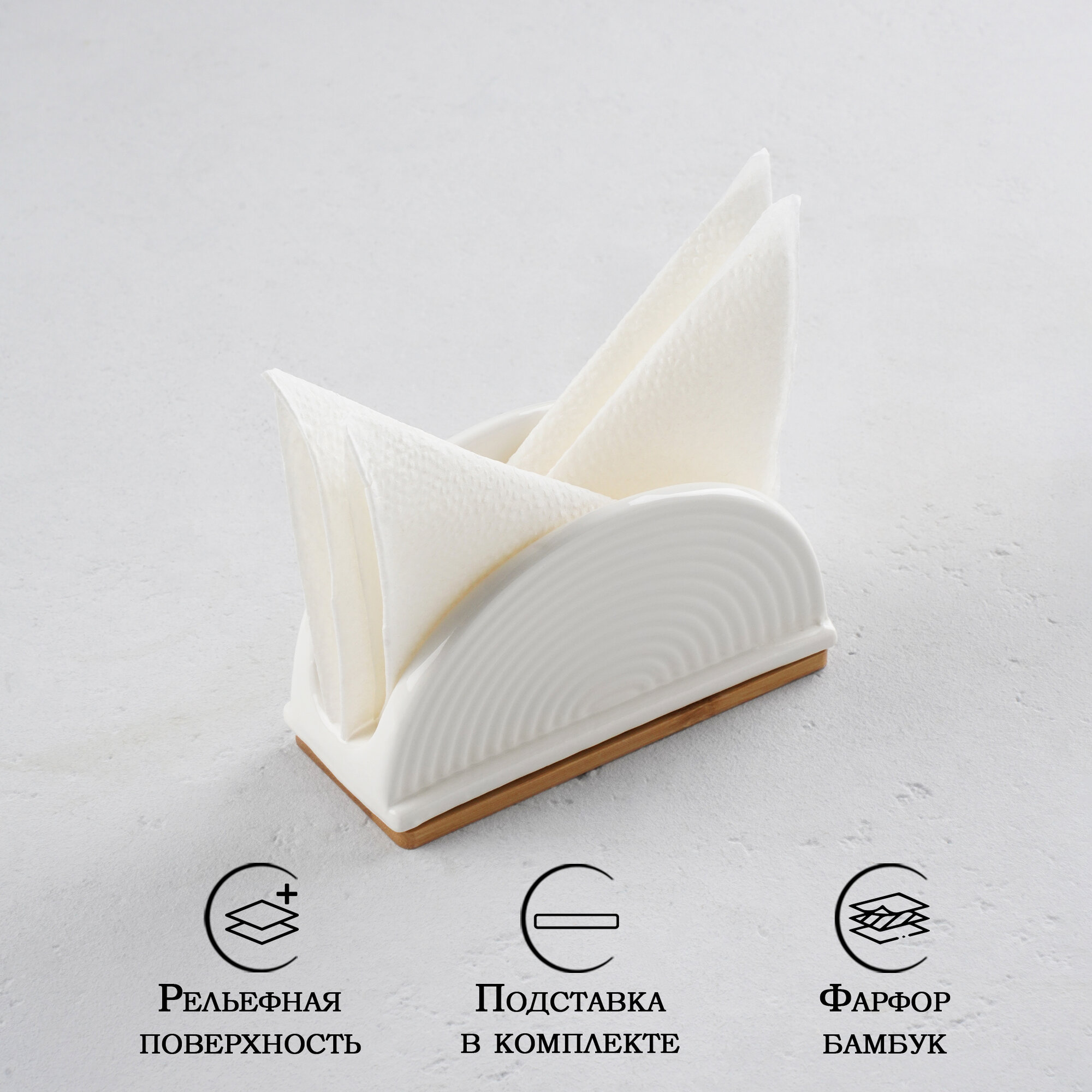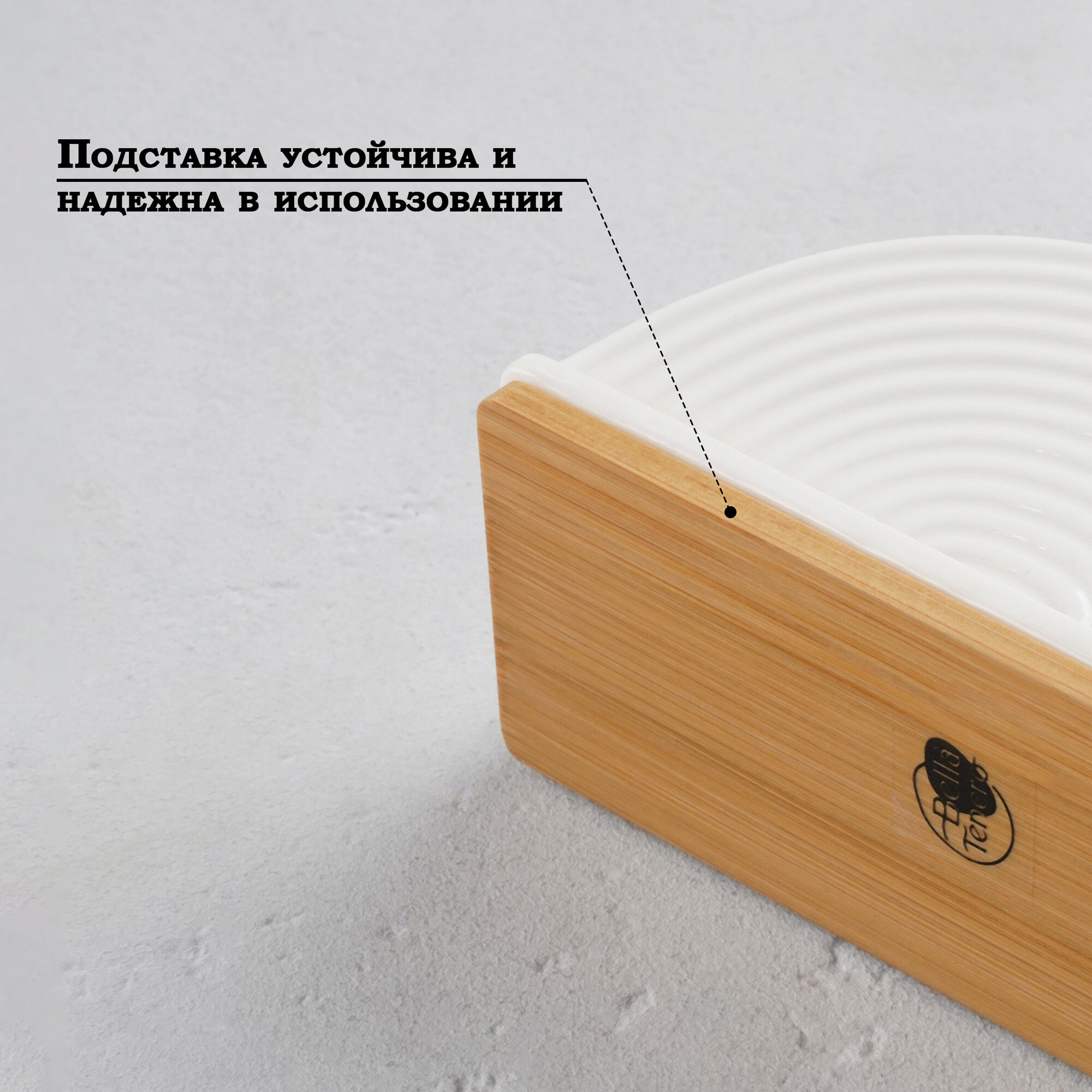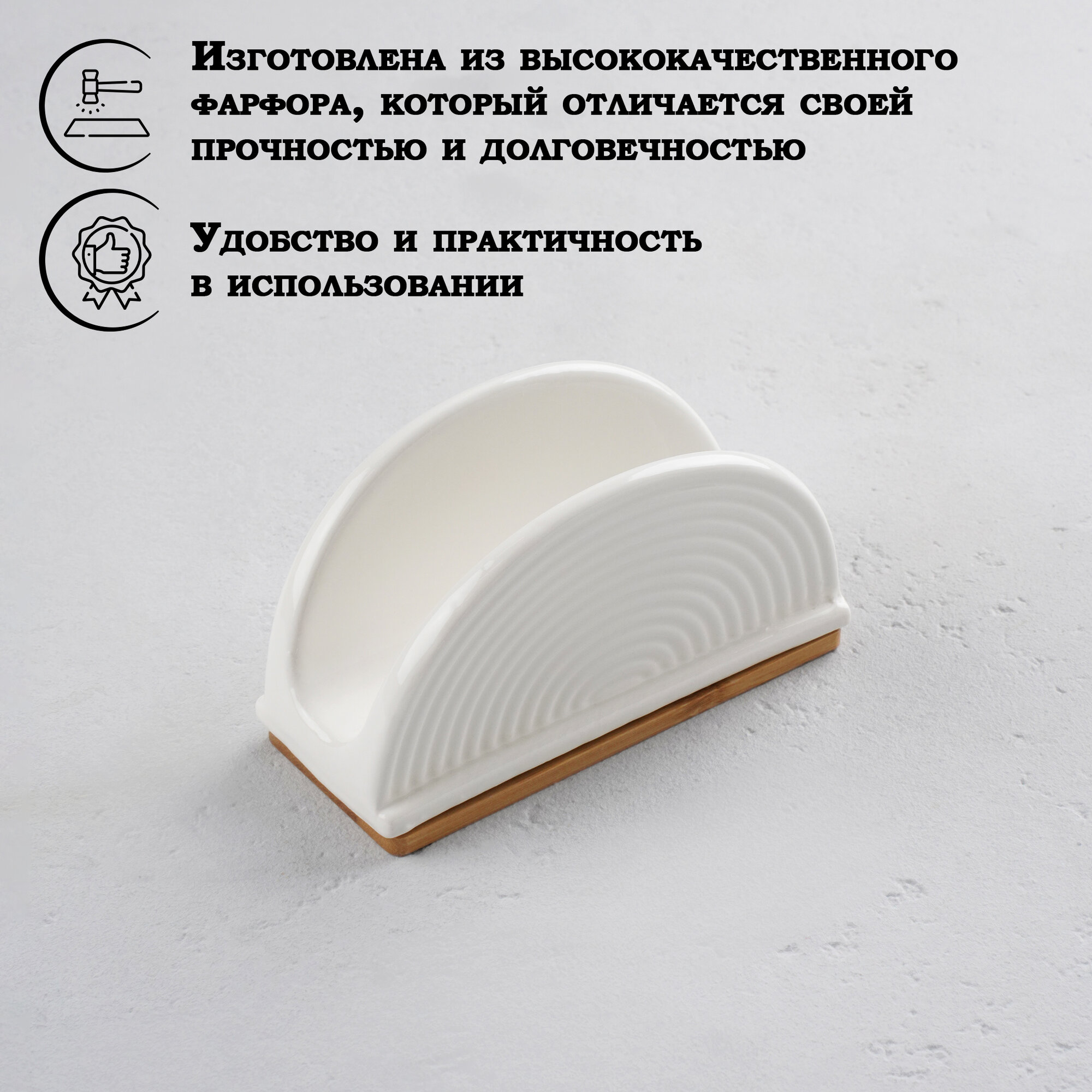 Салфетница фарфоровая на деревянной подставке BellaTenero, цвет белый интересное: