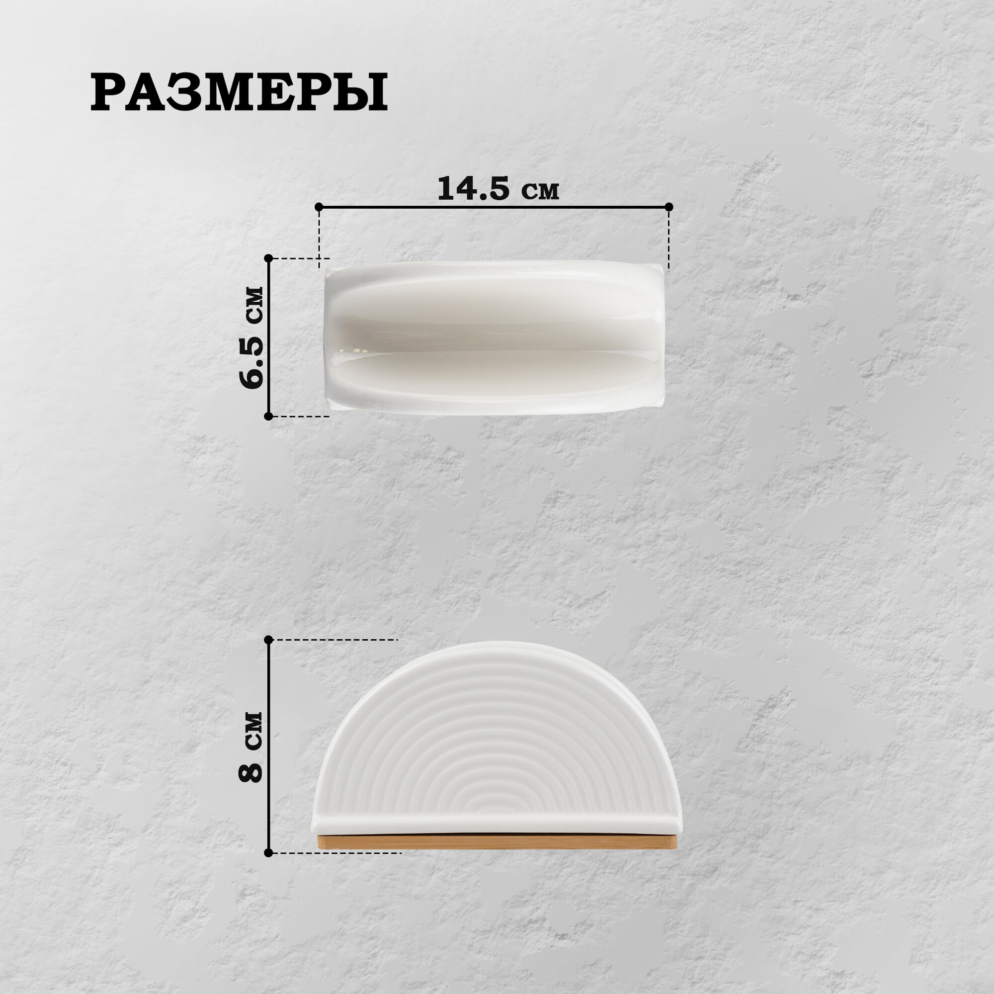 Салфетница фарфоровая на бамбуковой подставке BellaTenero, 14,5×6,5×8 см, цвет белый