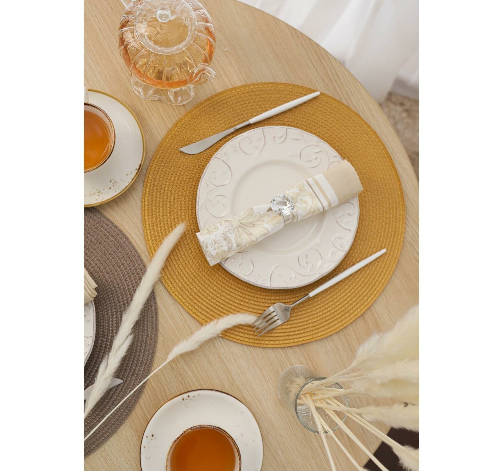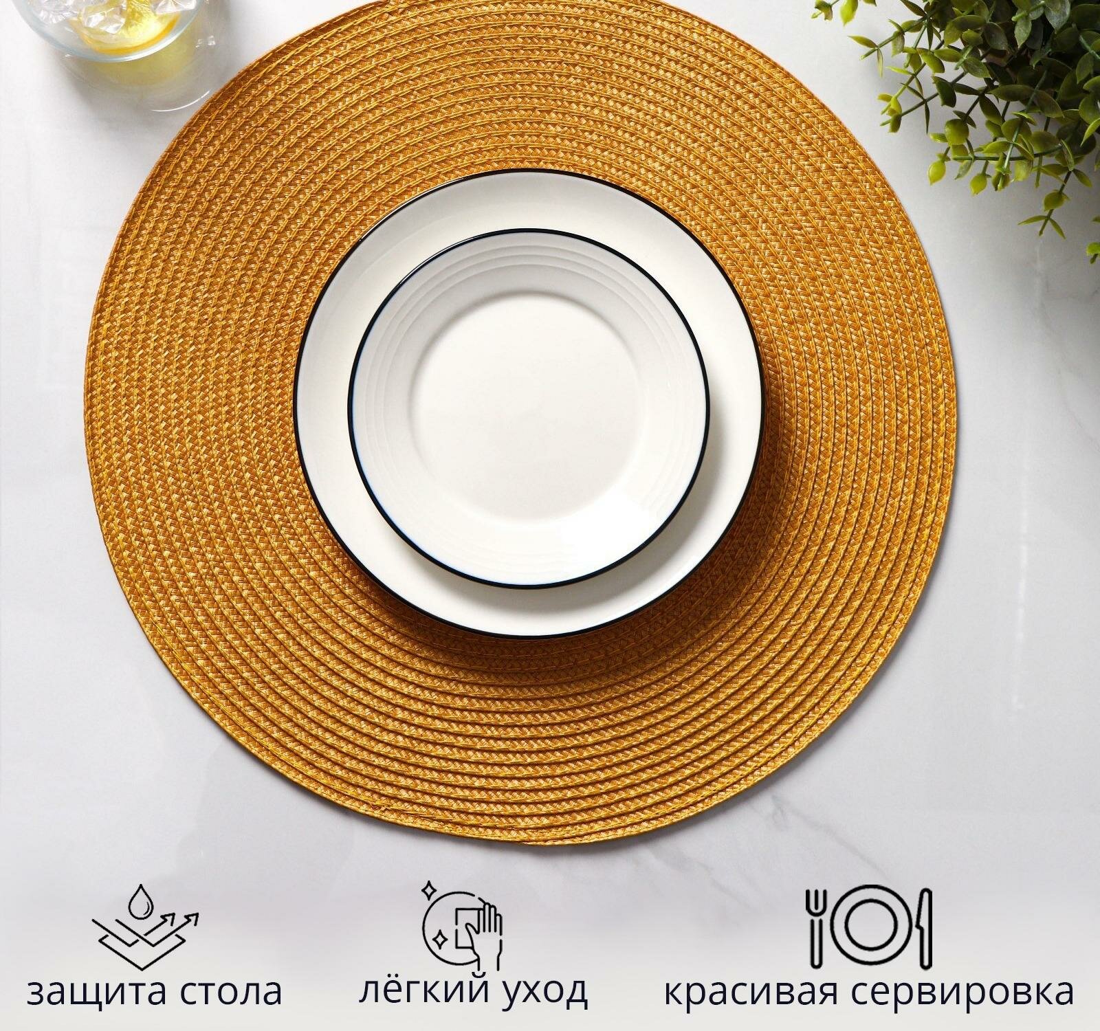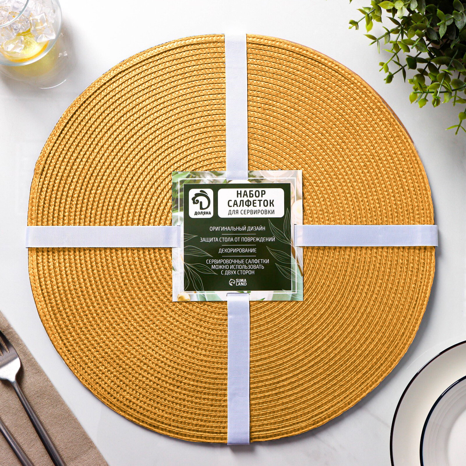 Набор салфеток сервировочных на стол Доляна «Вира», 4 шт, d=38 см, цвет золотой
