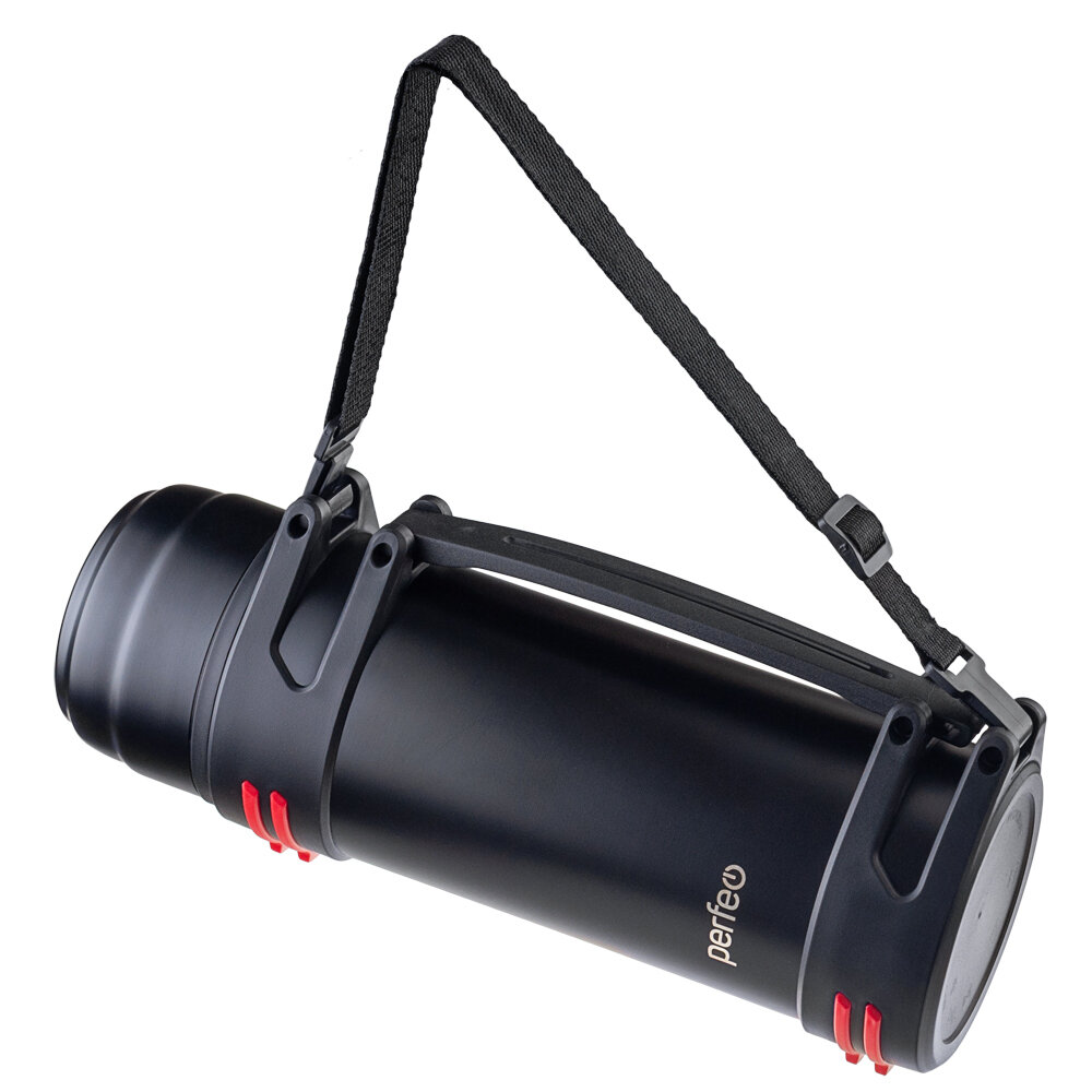 Термос PERFEO для напитков с к/п, ситечком, чашкой, ручкой, ремнем, объем 2 л, черный (PF_D0216)