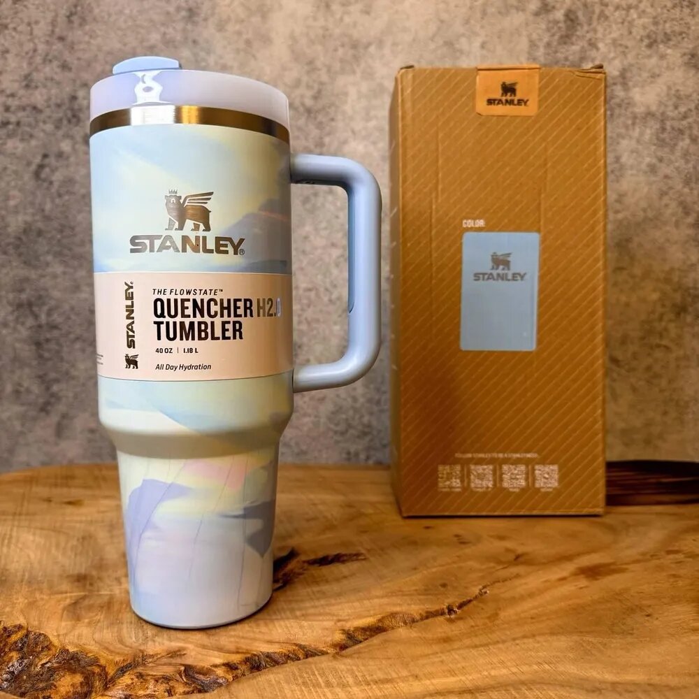 Термокружка из нержавеющей стали для холодных и горячих напитков, Stanley 1.18л, Голубой Мрамор