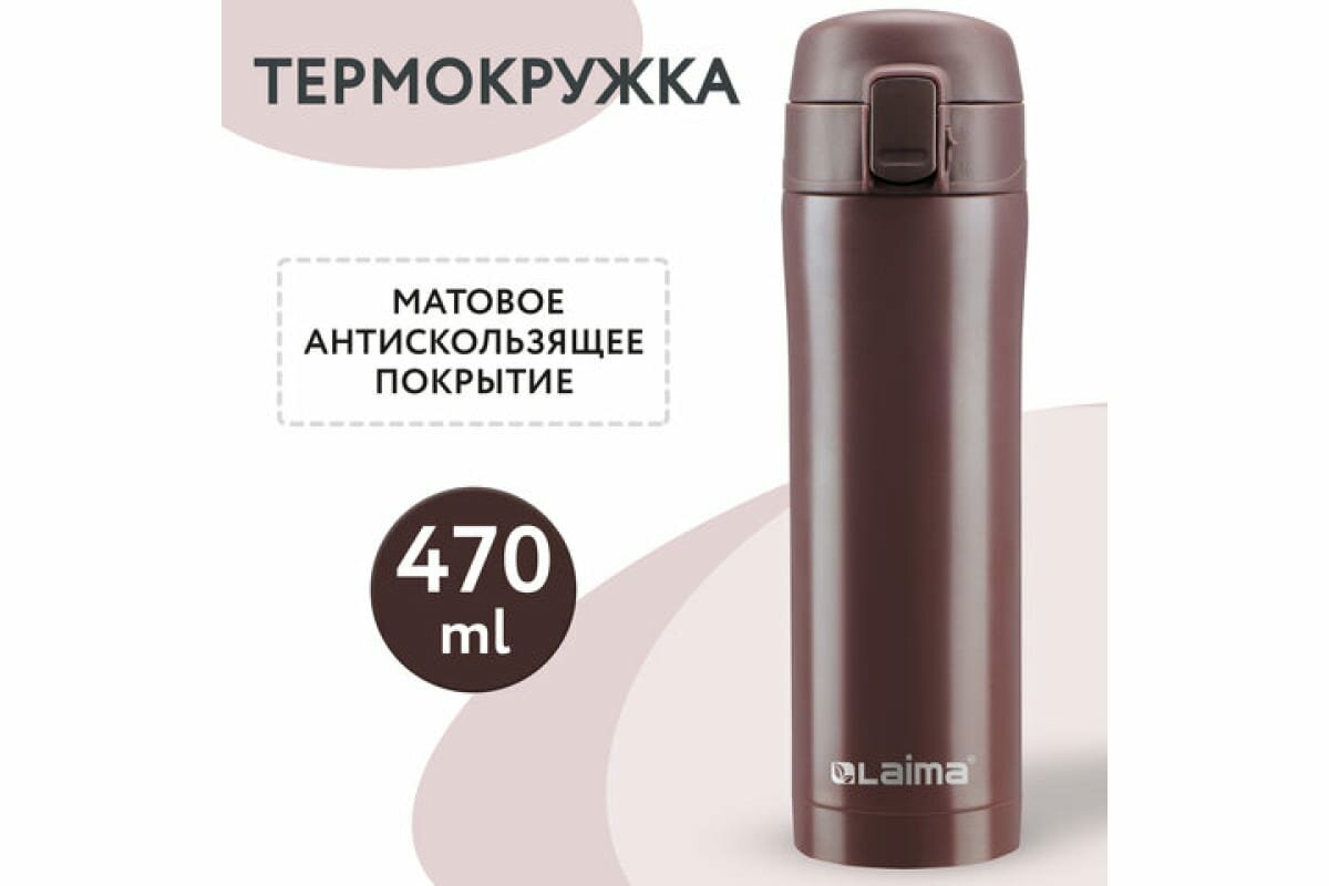 Термокружка 470 мл из нержавеющей стали SUS304, имперский коричневый матовый, LAIMA, 608082