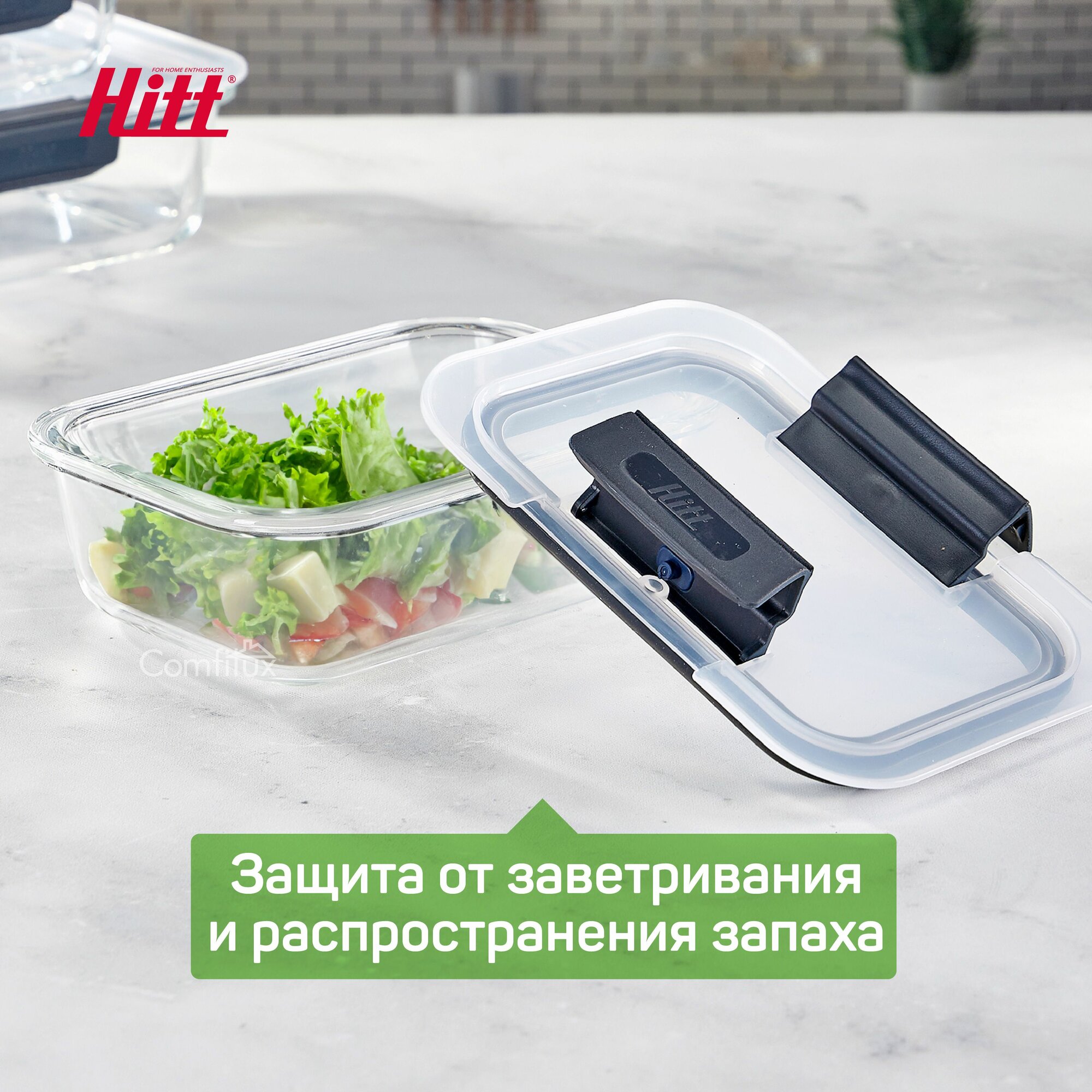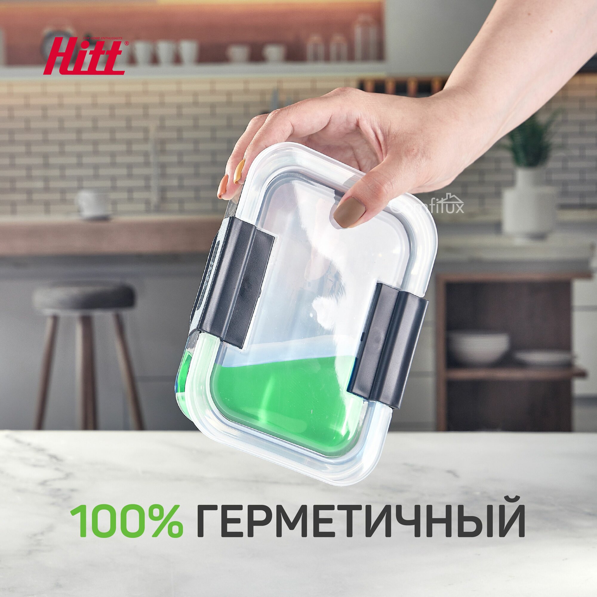 Контейнер для еды Hitt стеклянный, жаропрочный с крышкой, 630 мл интересное: