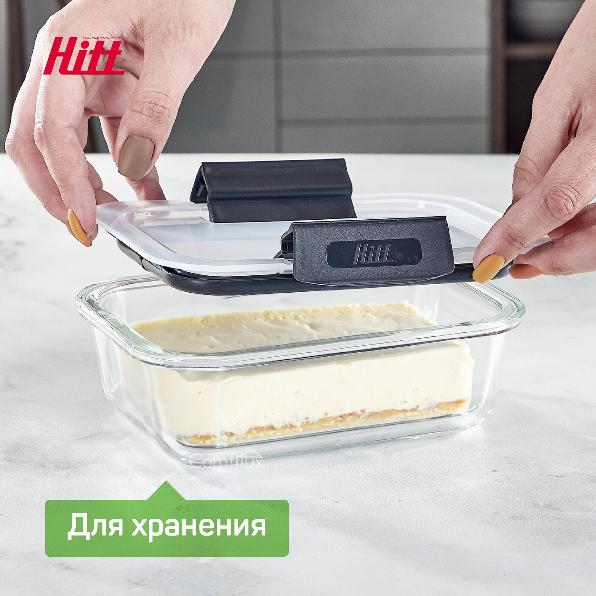 Контейнер для еды Hitt стеклянный, жаропрочный с крышкой, 1 литр