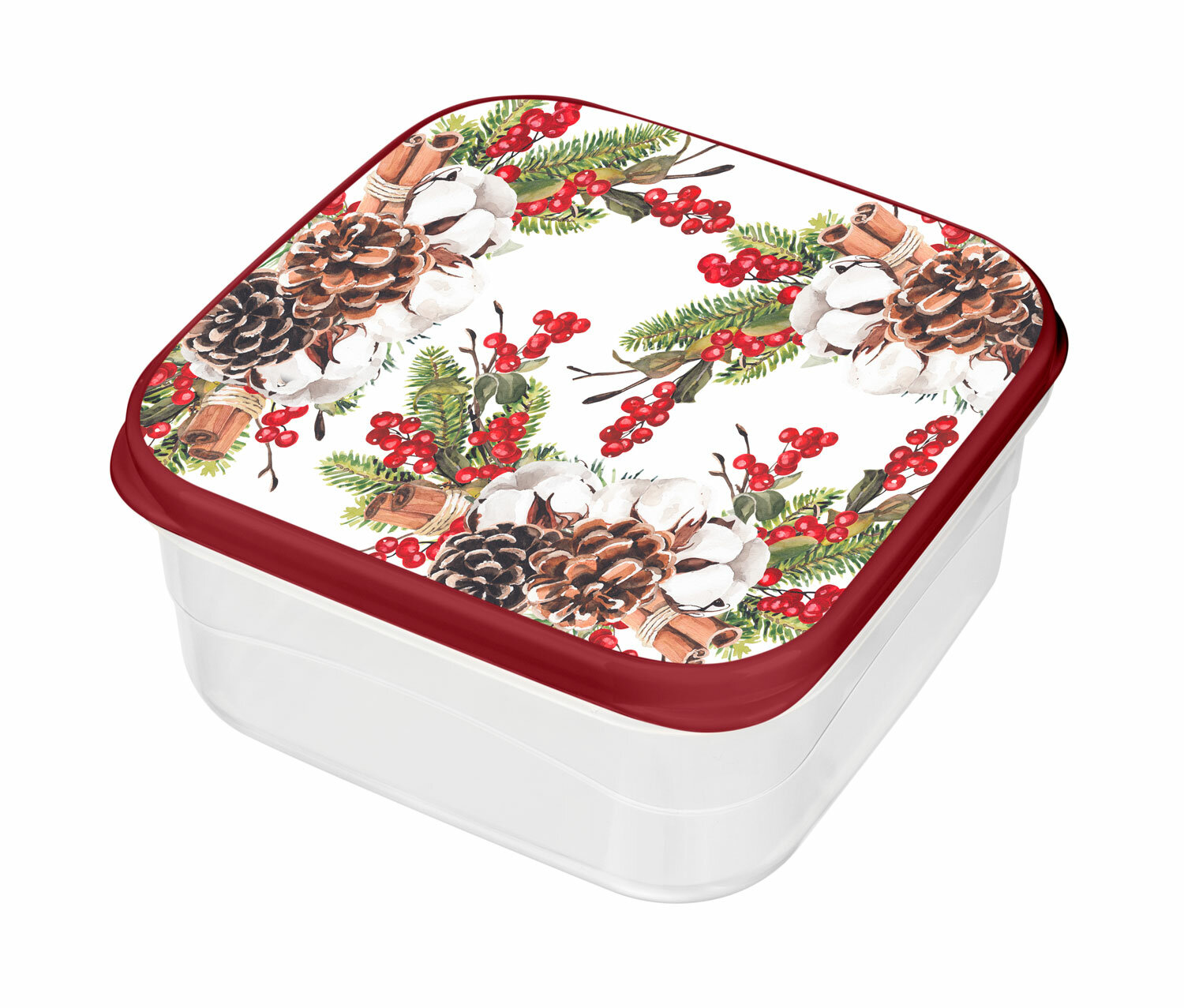 Купить Комплект контейнеров для продуктов с декором 4шт 0,3л+0,45л+0,65л+1л (Бордовый)