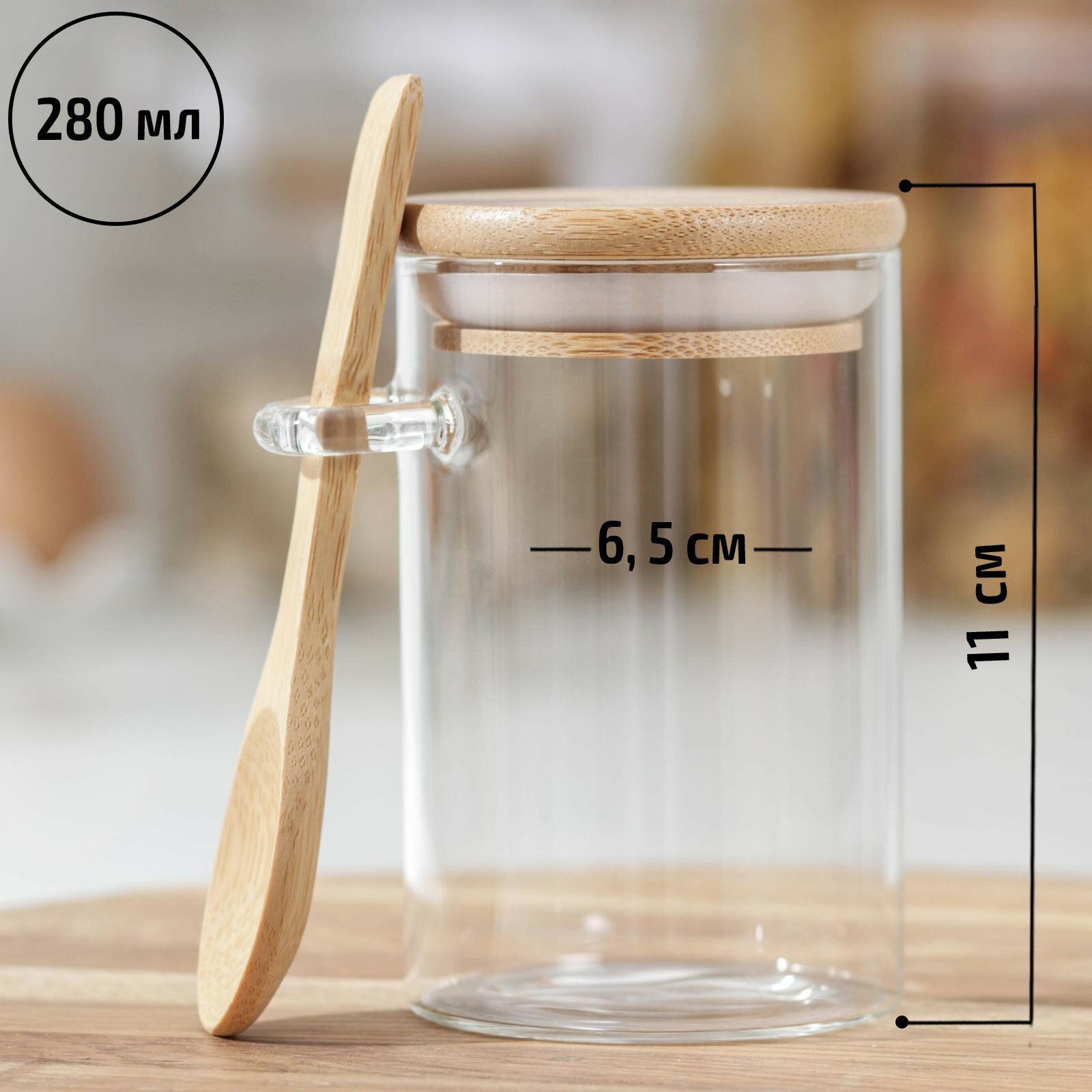 Банка стеклянная для сыпучих продуктов с бамбуковой крышкой и ложкой «Эко», 280 мл, 10×6,5 см интересное: