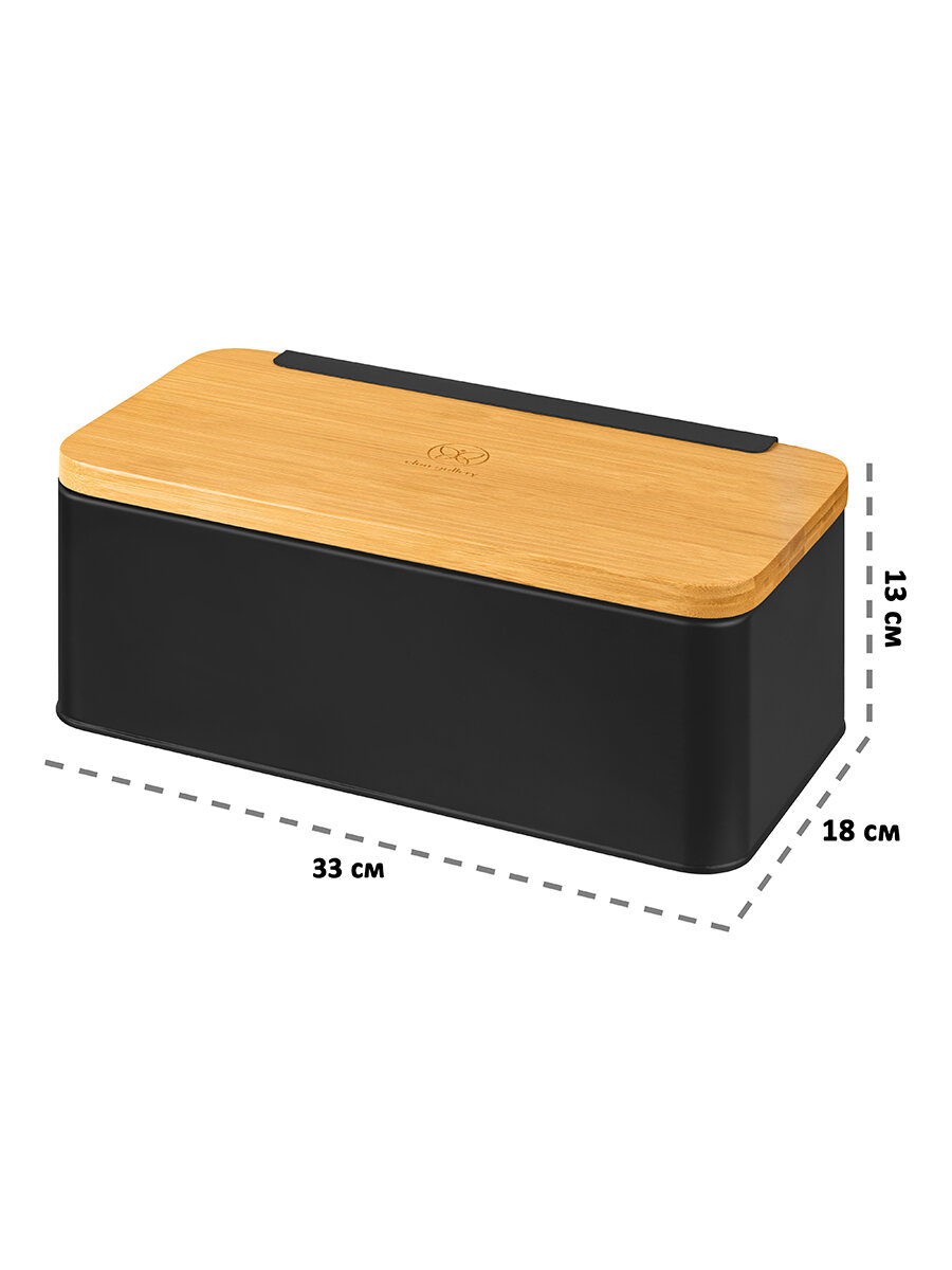 Хлебница "Черная" 33*13*18 см с бамбуковой крышкой-доской 32,8*17,8*1,5 см, металл/бамбук, Elan Gall . интересное: