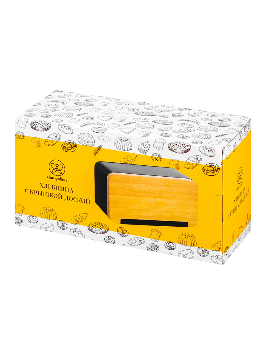Хлебница Elan Gallery "Черная" 33*13*18 см с бамбуковой крышкой-доской 32,8*17,8*1,5 см, металл/бамбук (240318 Elan)