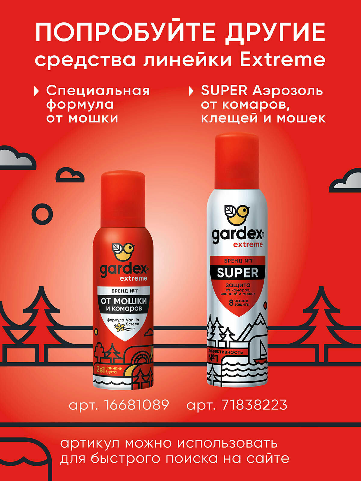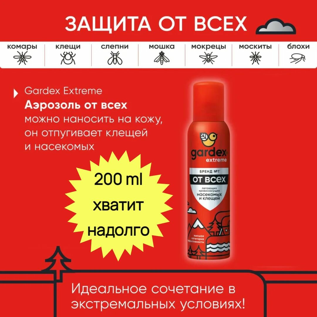 | Подробная комплектация | Аэрозоль от всех летающих кровососущих насекомых, Gardex Extreme, 200 мл |