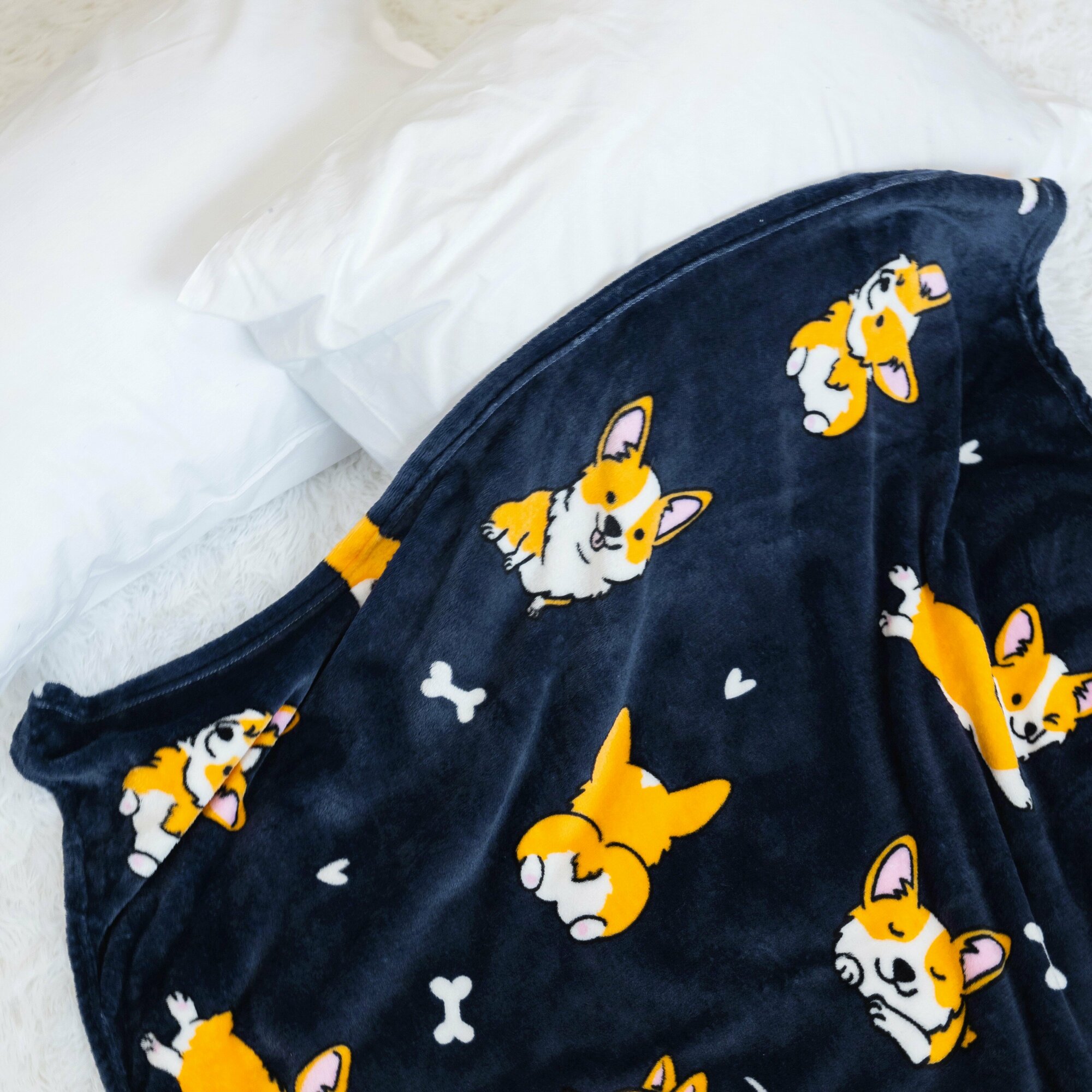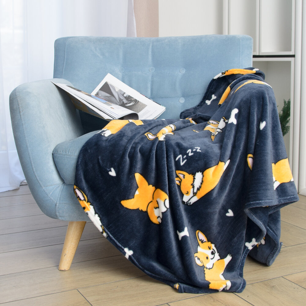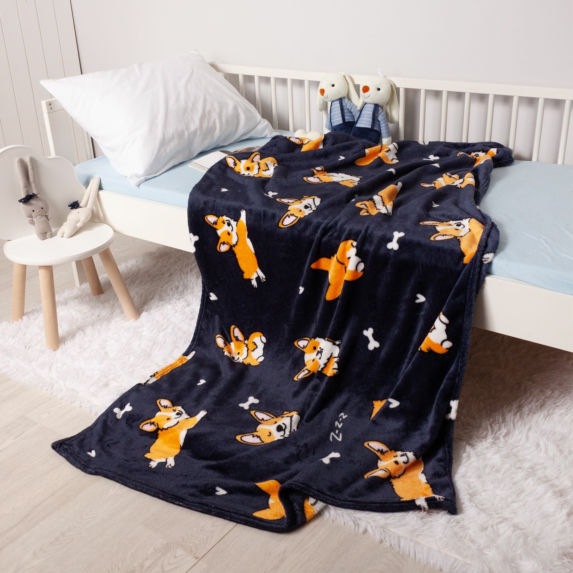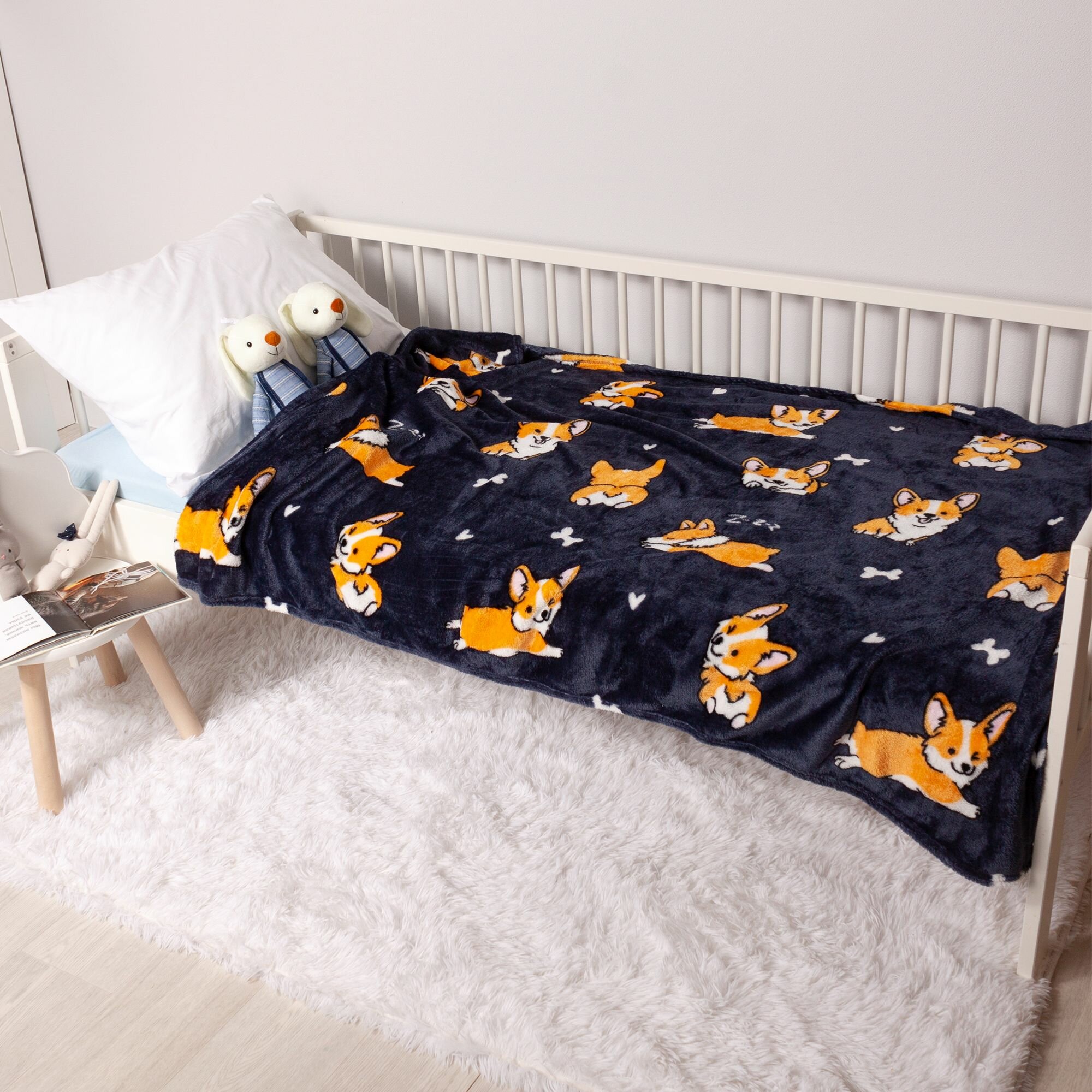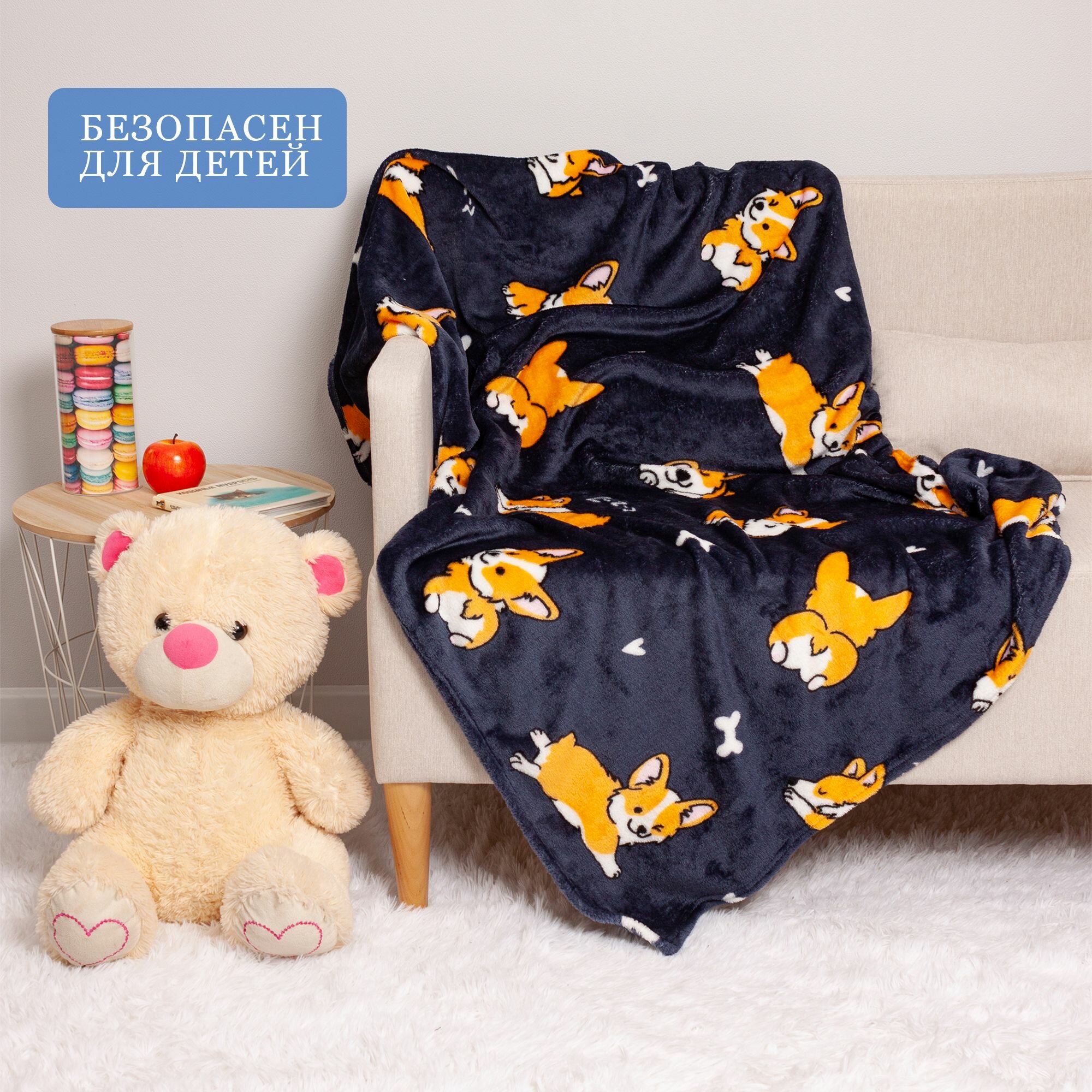 СохранитьДетский плед из микрофибры, 100 х 150 см, рисунок собачки корги, синий интересное: