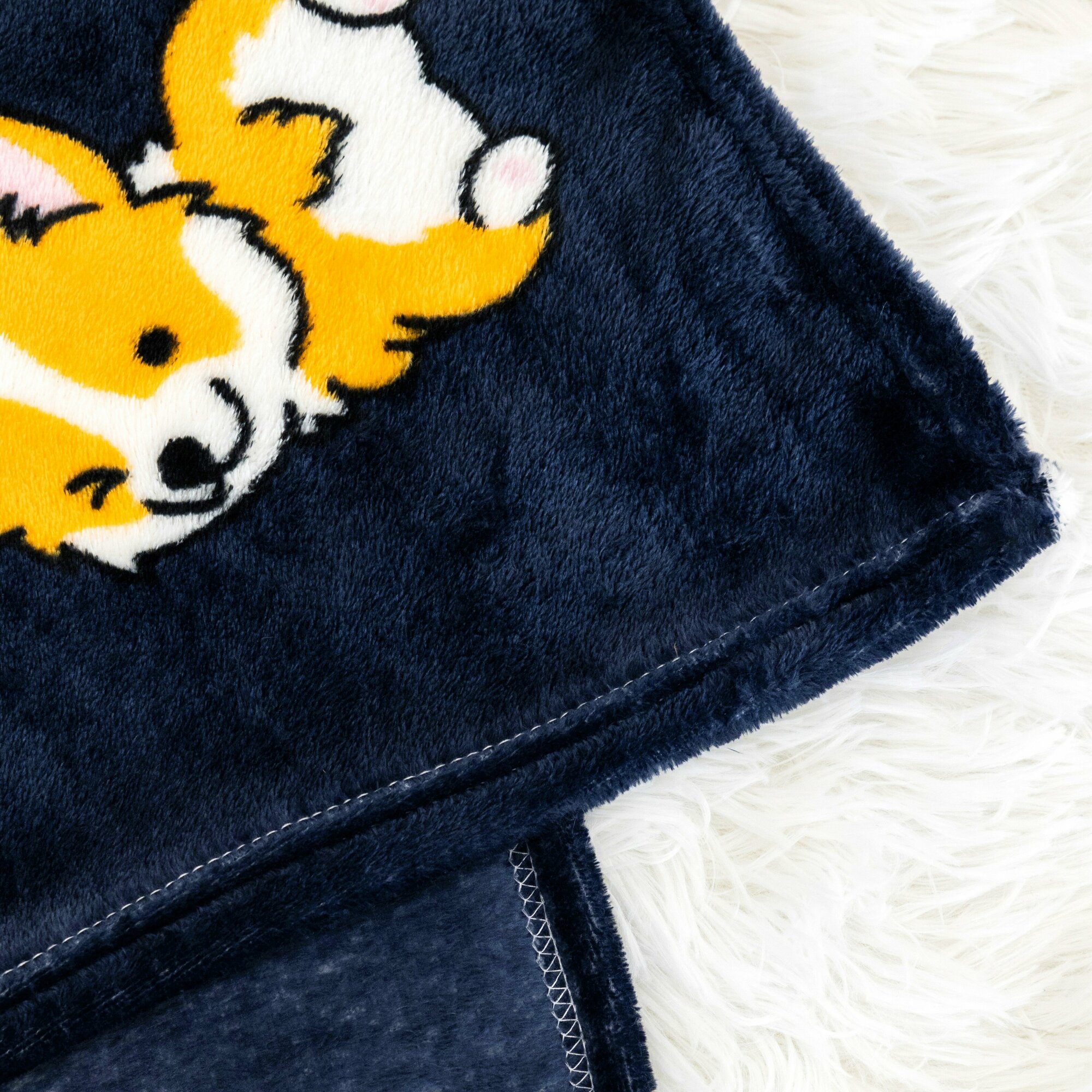 Купить Детский плед из микрофибры, 100 х 150 см, рисунок собачки корги, синий