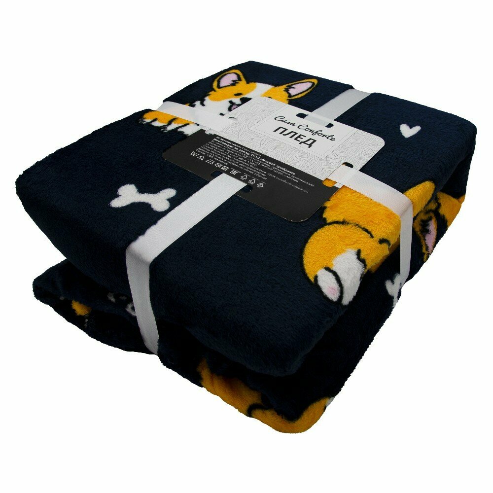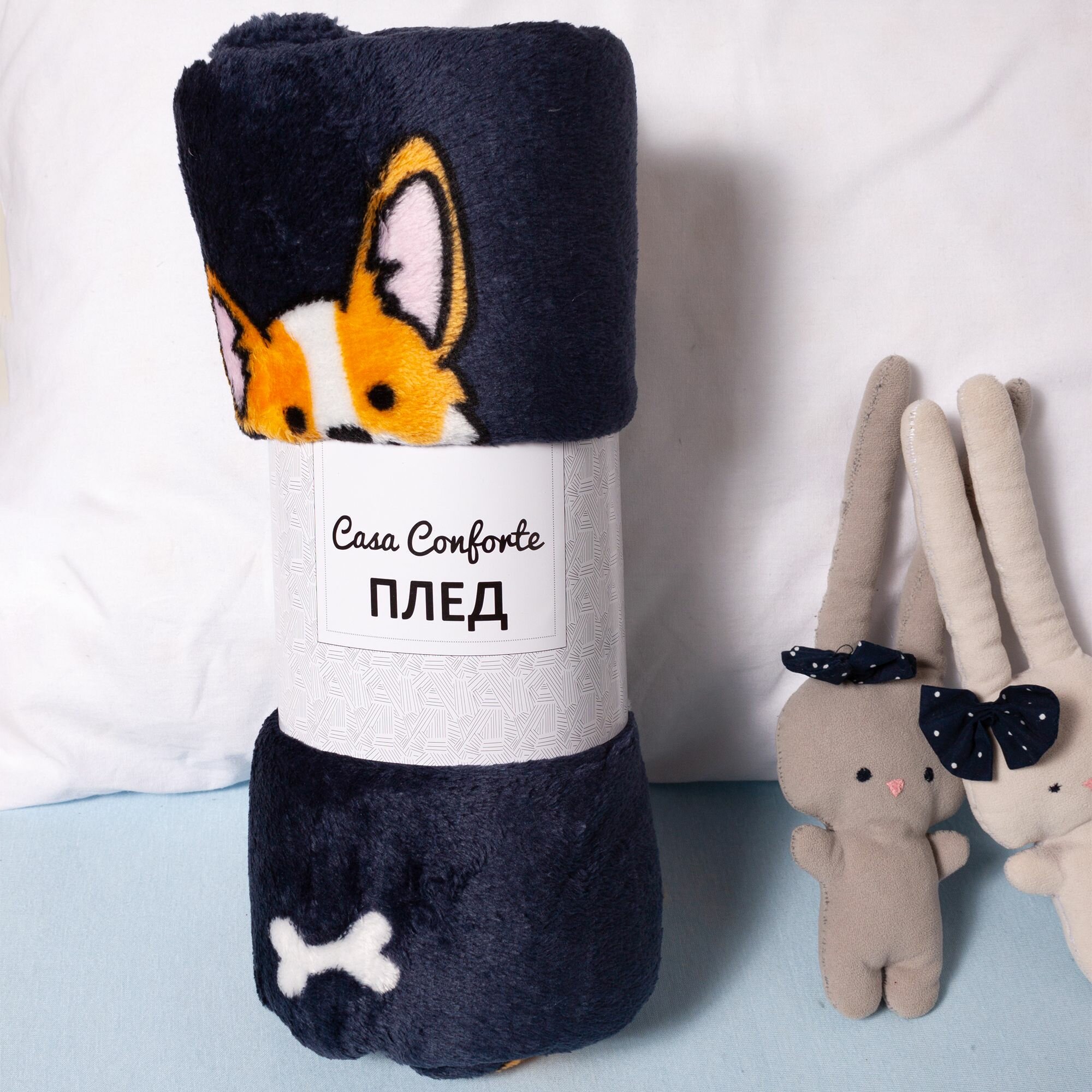 Плед велсофт детский 100х150 см Casa Conforte Фестиваль, корги / темно-синий