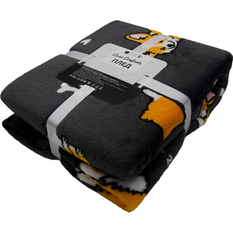 Плед велсофт детский 100х150 см Casa Conforte Фестиваль, корги / темно-серый