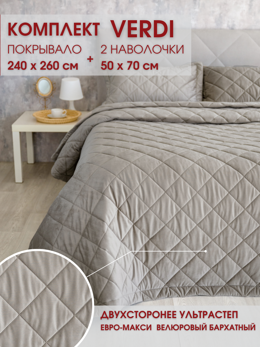 Комплект покрывало с наволочками стеганое на кровать Verdi Верди 70 260х240 см + 2 наволочки 50х70 см - 2 шт.