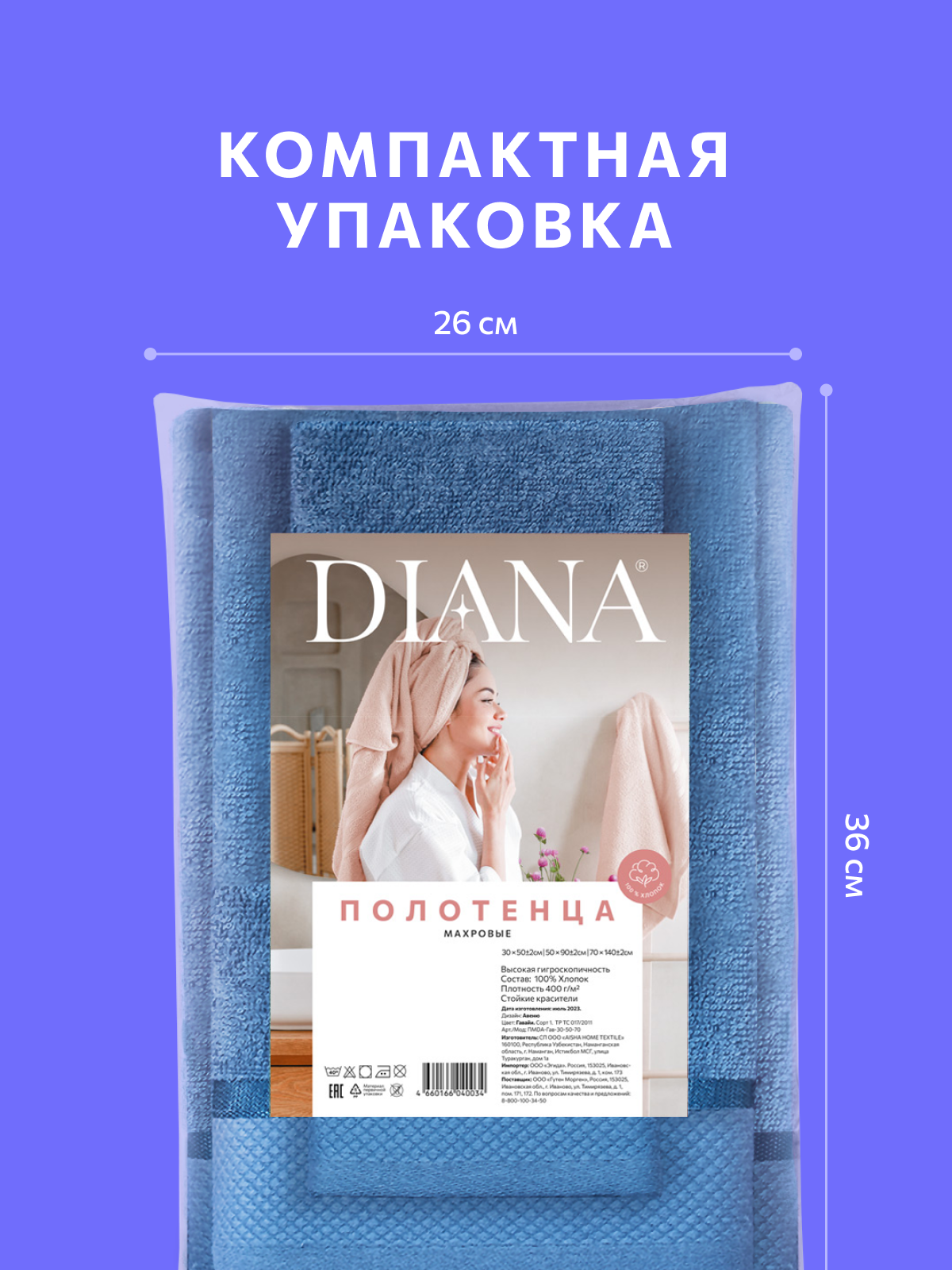 СохранитьПолотенце махровое 3 шт, 30х50, 50х90, 70х140, Diana, Нуар, цвет: Лазурь интересное: