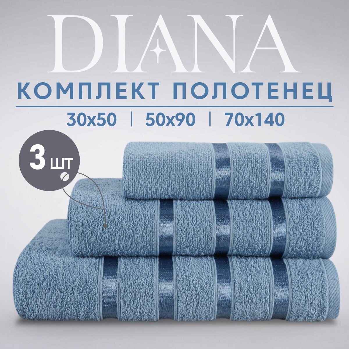 Набор полотенец махровых (30х50 см, 50х90 см, 70х140 см), Diana, цвет: Лунный свет